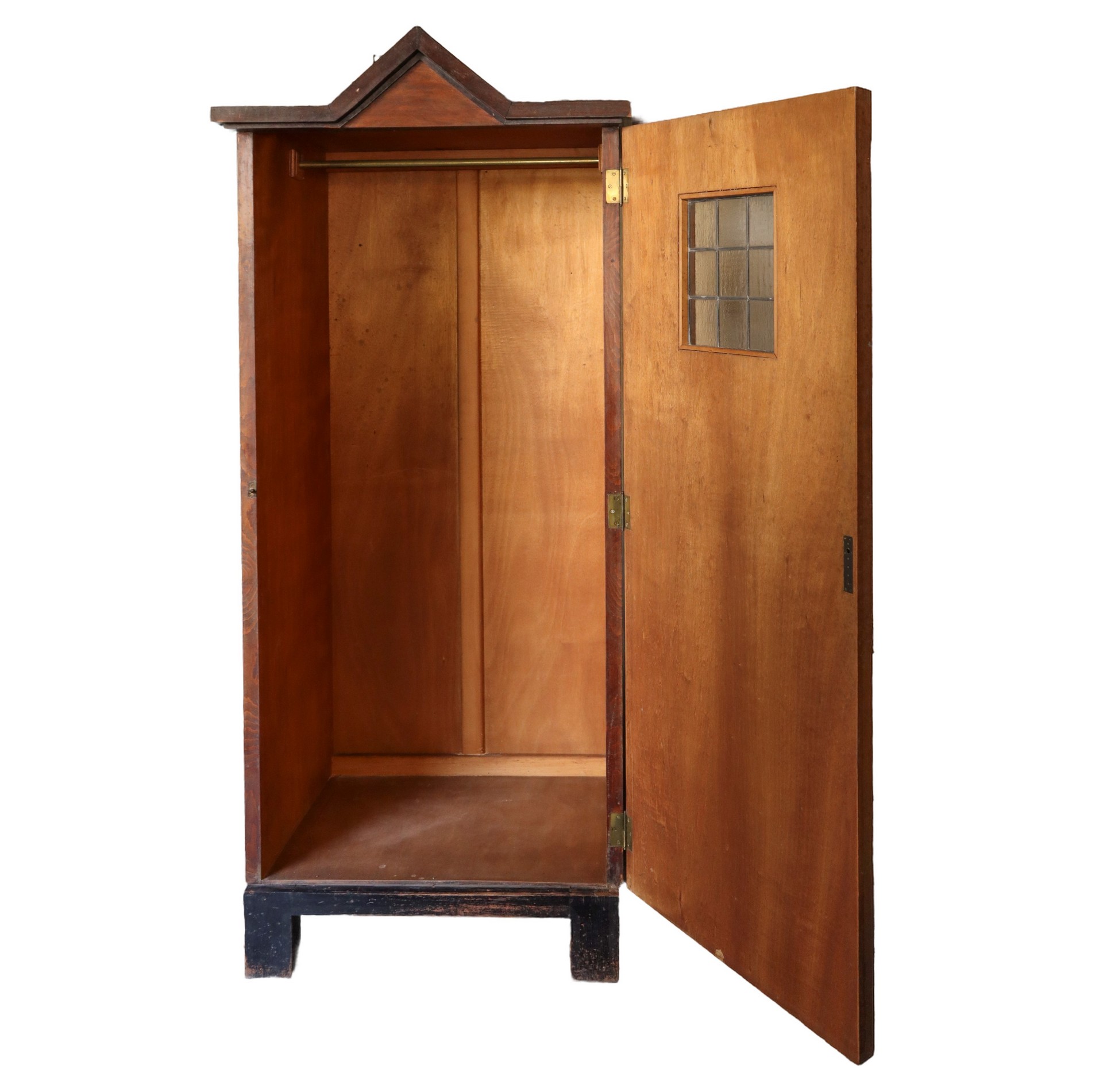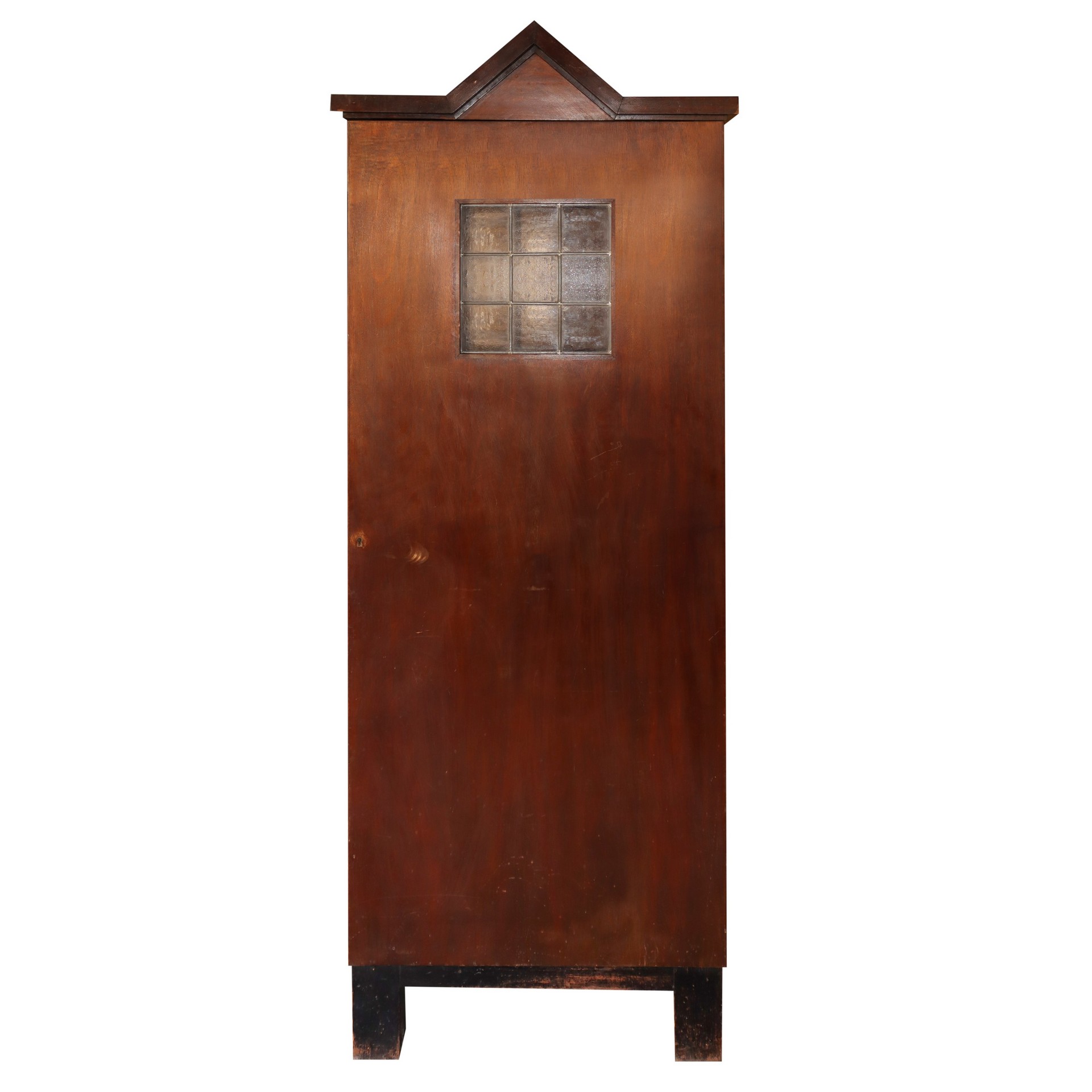 ARMADIO NELLO STILE DECÒ IN LEGNO DI NOCE, 20° secolo cm 195 x cm 75 x cm 56Impiallaciato, interni in legno di rovera, sportello a un'anta con vetri piombati, timpano in testa, piedi rettangolari.