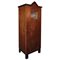 Impiallaciato, interni in legno di rovera, sportello a un'anta con vetri piombati, timpano in testa, piedi rettangolari.