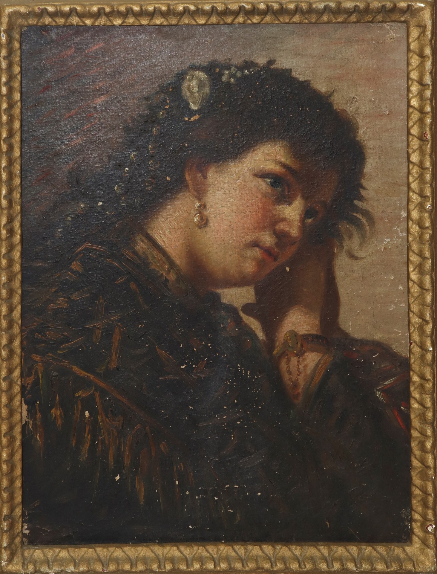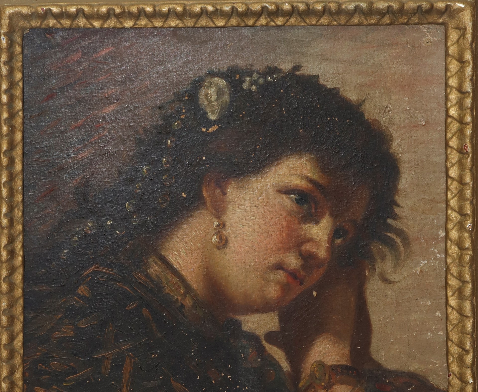 Donna con un bracciale, Primi 20° secolo h Cm 40 x 30 in cornice h cm 50 x 40Olio su cartone