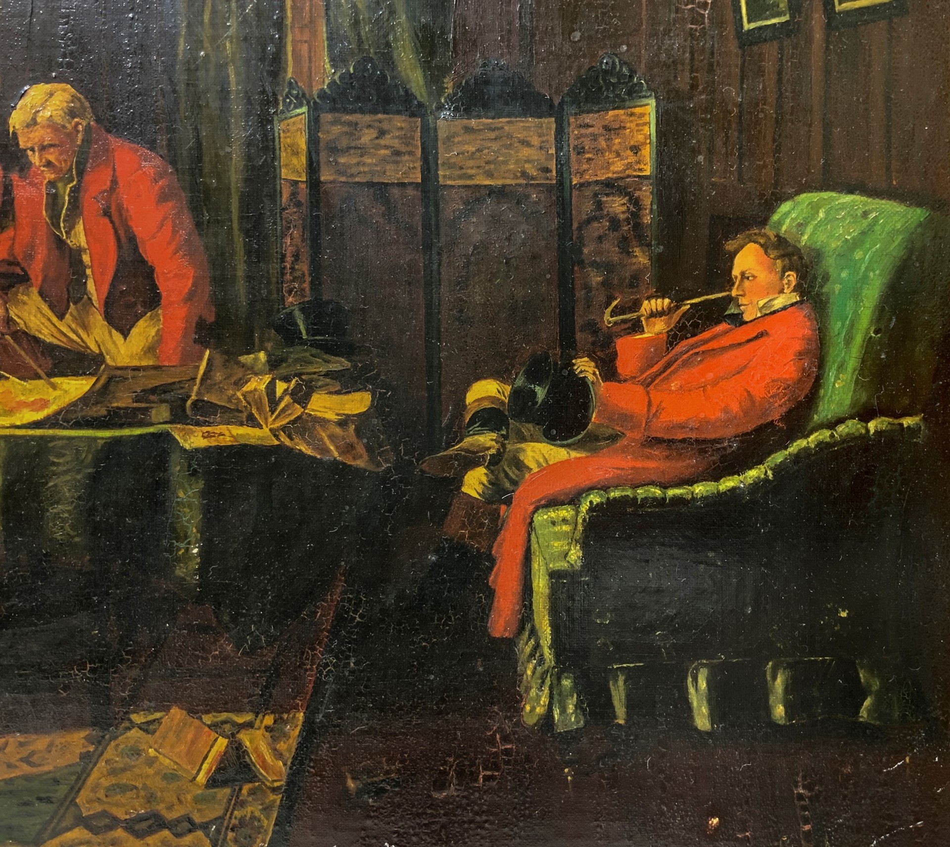Uomini in abito rosso in un interno, nineteen° secolo 41x61 cm, in cornice 56x75 cm Dipinto a olio