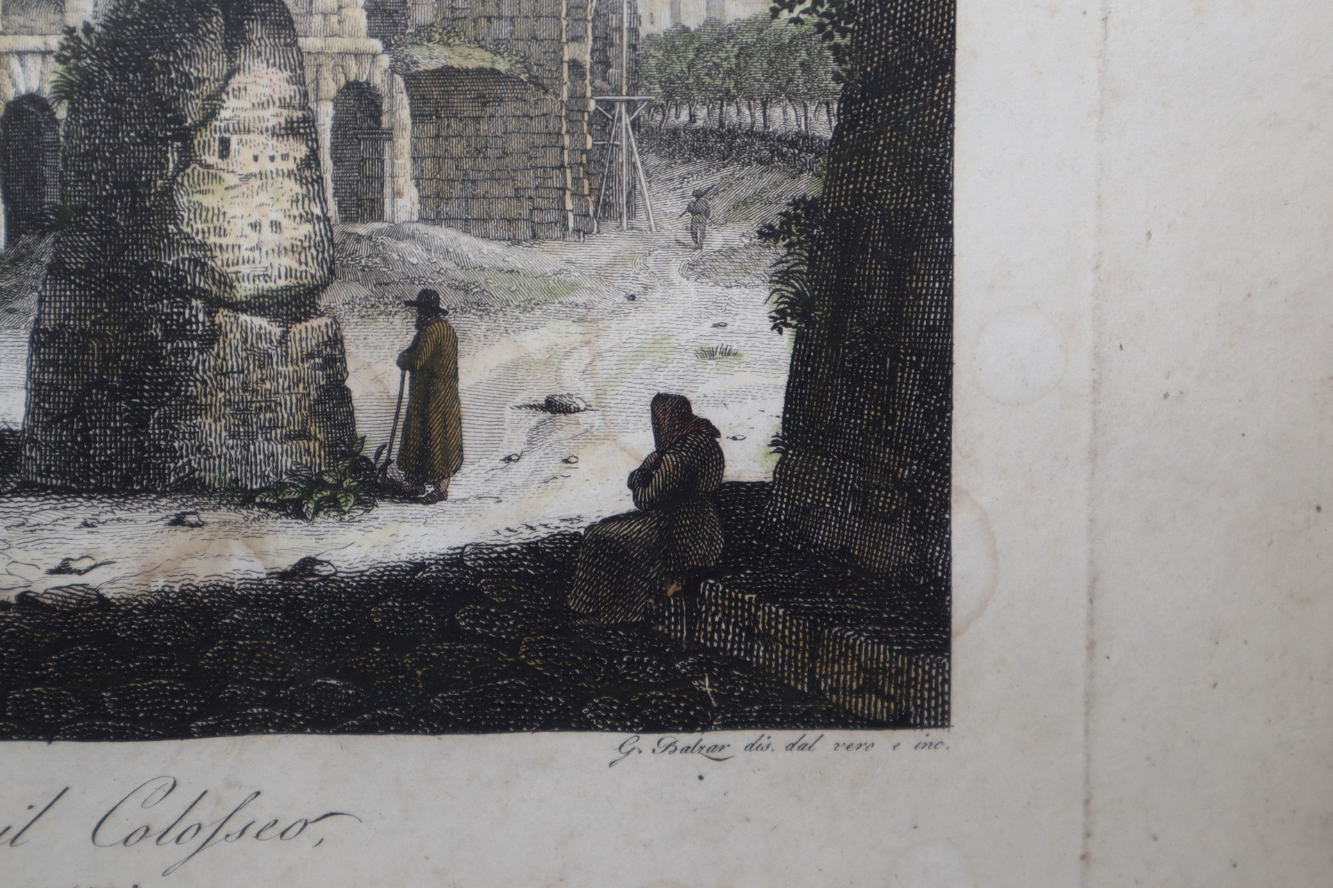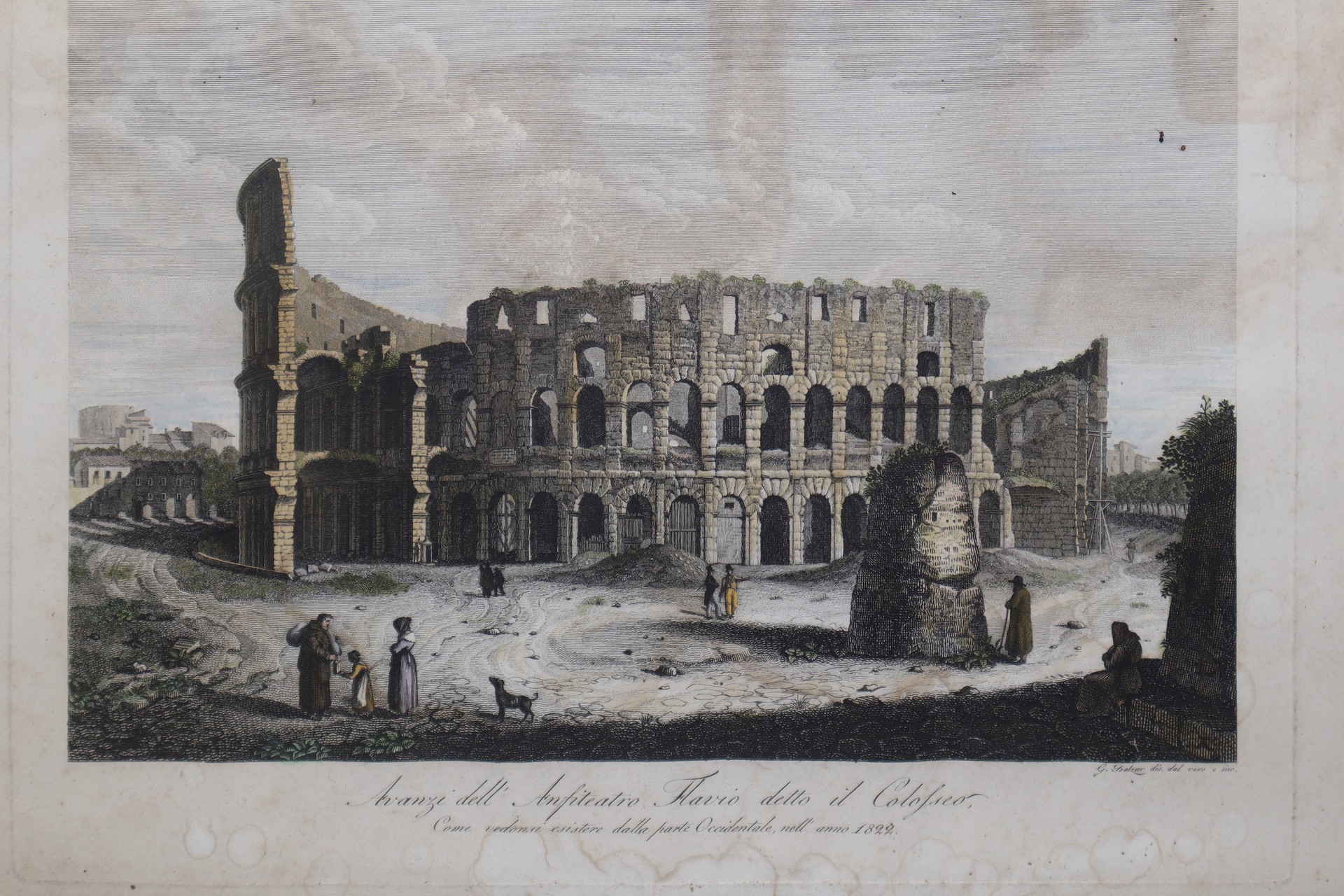 Balzar Giovanni Battista (Roma 1777-1831) - Avanzi dell'anfiteatro Flavio detto Colosseo nel 1822In cornice cm 37 x 47Incisione all'acquaforte acquerellata