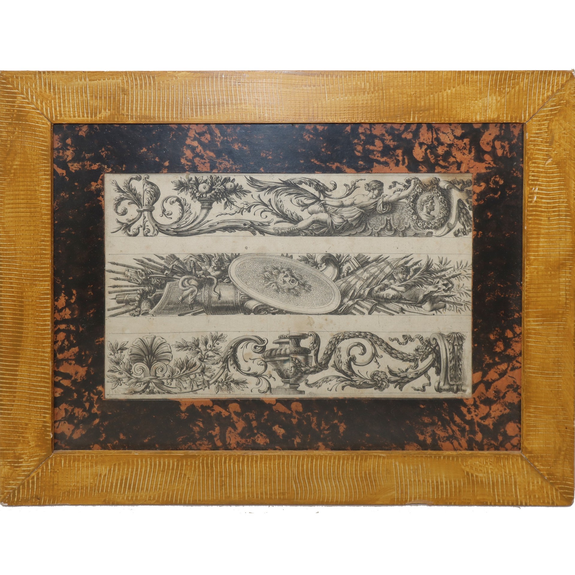 Jean Le Pautre (Parigi 1618-Parigi 1682) - Coppia di incisioni raffiguranti festoni con Putti,Ninfe e Gorgonie H mm 176 x 276 - in cornice 33,5 x 43 / H mm 182 x 282 - in cornice 33,5 x 43 Incisione all'acquaforte