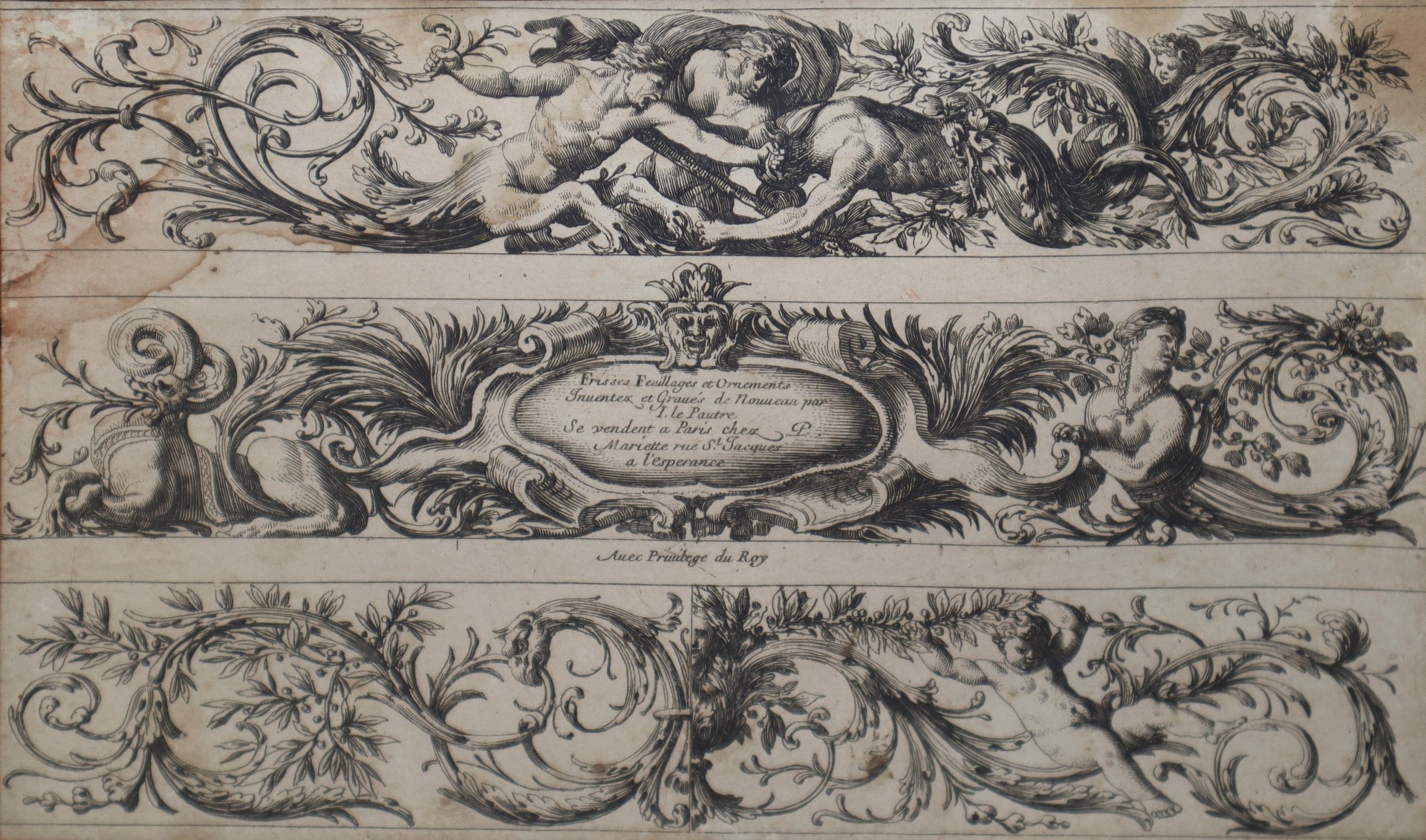 Jean Le Pautre (Parigi 1618-Parigi 1682) - Coppia di incisioni raffiguranti festoni con Putti,Ninfe e Gorgonie