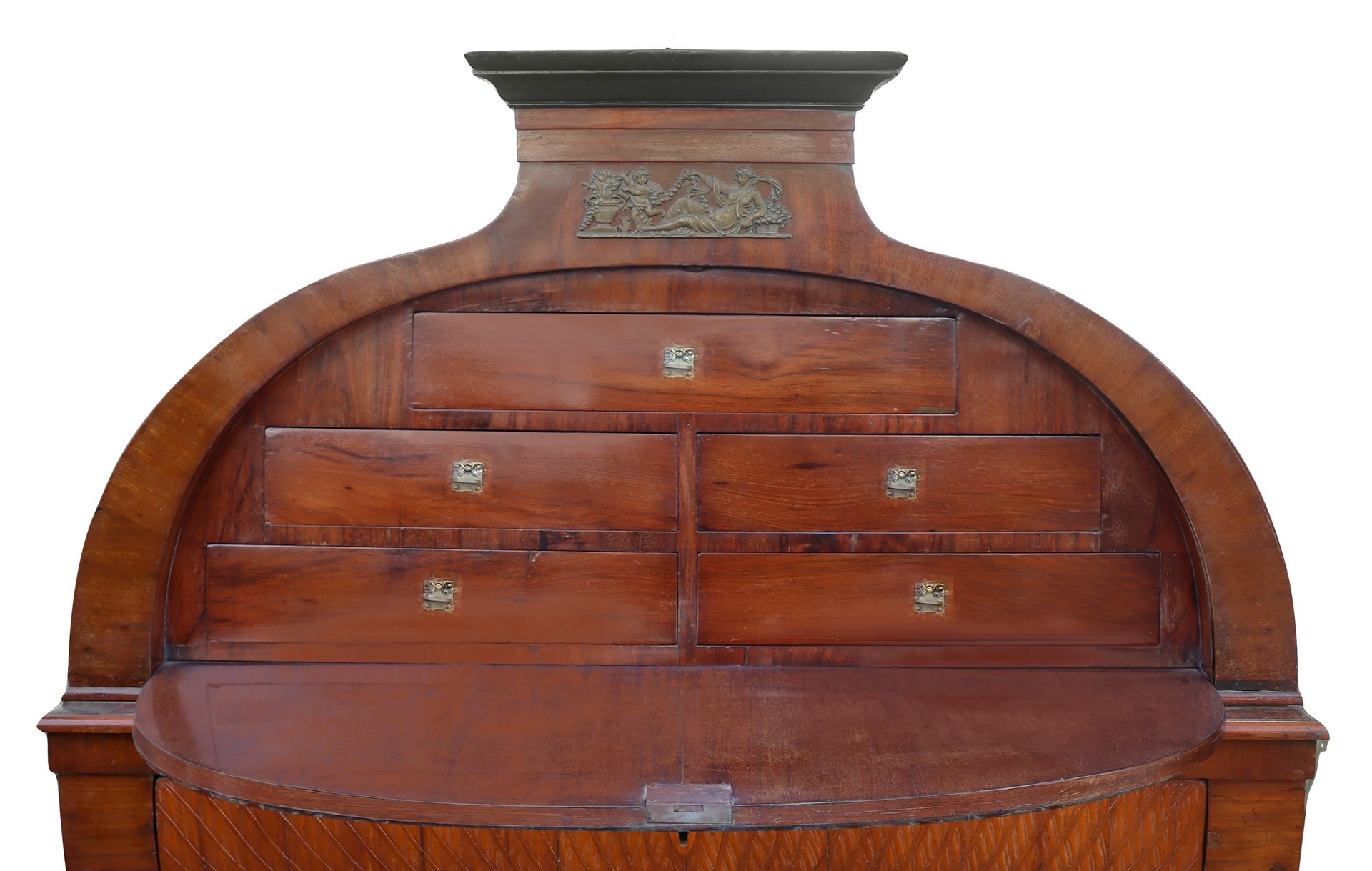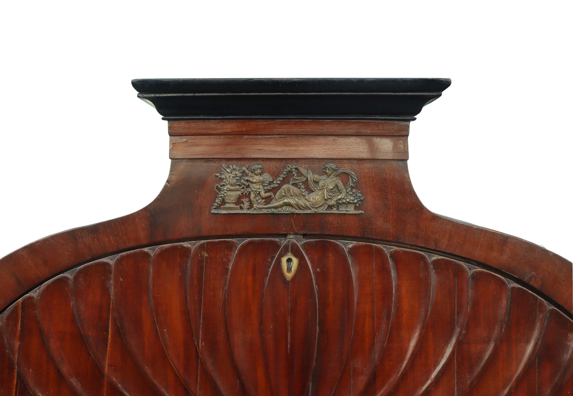 Chiffonier ad Urna, Sicilia, Primi 19° secolo , Empire periodh 172 x l 124 x p 55Rarissimo mobile iartigianato siciliano in piuma di mogano, con cariatidi in osso ai lati dei quattro cassetti della base. Corpo superiore ad arco con battente di chiusura scolpito a coda di pavone.Rarissimo mobile iartigianato siciliano in piuma di mogano, con cariatidi in osso ai lati dei quattro cassetti della base. Corpo superiore ad arco con battente di chiusura scolpito a coda di pavone.