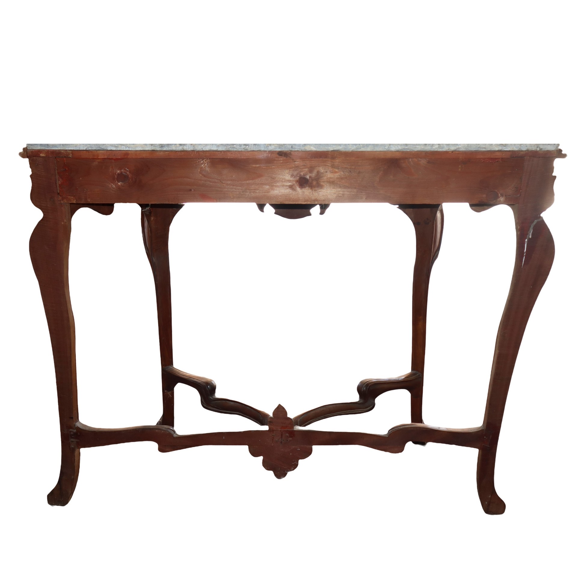 Console Liberty in legno di noce, marmo grigio bardiglio al piano, Primi 20° secolo