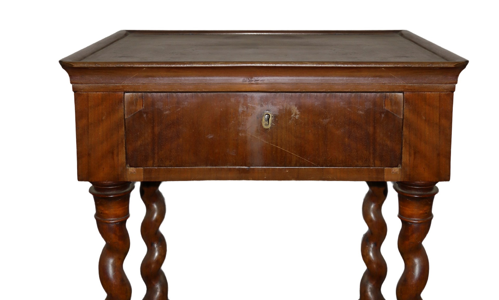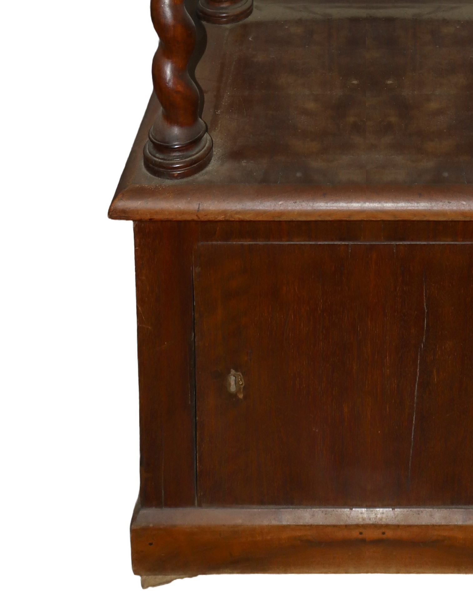 Comodino in legno di mogano, Sicilia, 19° secolo Cm 93x48x40Un cassetto, colonne torchon e sportello bassoUn cassetto, colonne torchon e sportello basso