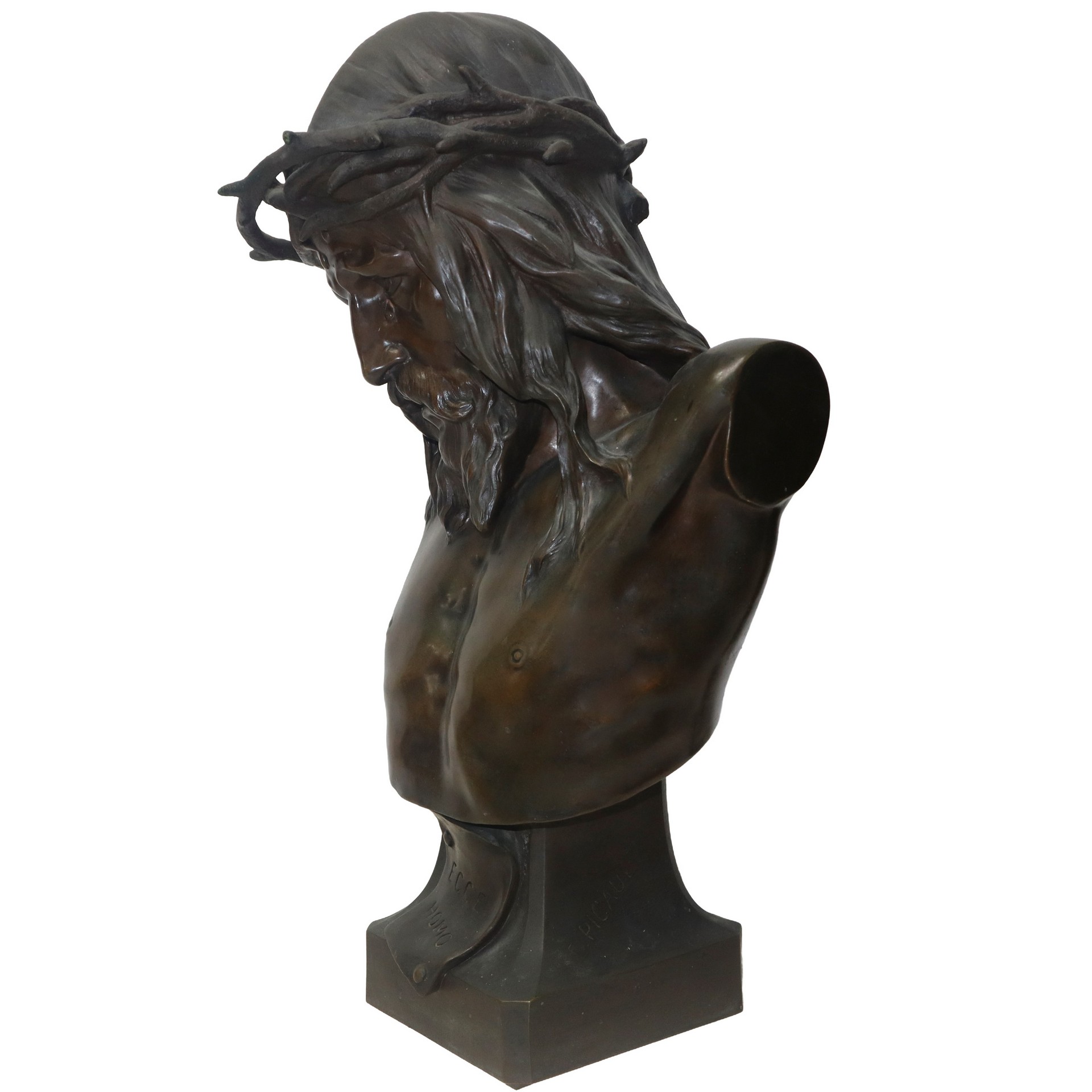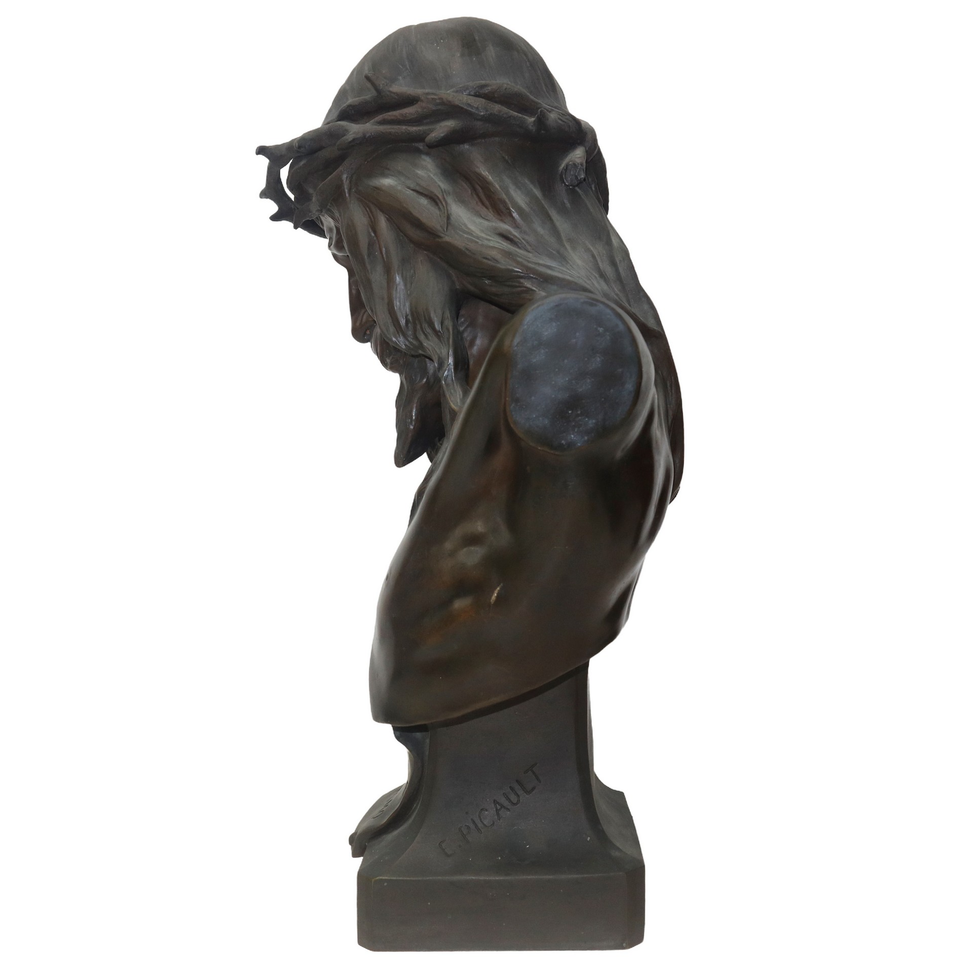 Ecce Homo, scultura in bronzo patinato bruno. H cm 48. base cm 16x16Firmato E.PicaultFirmato E.Picault