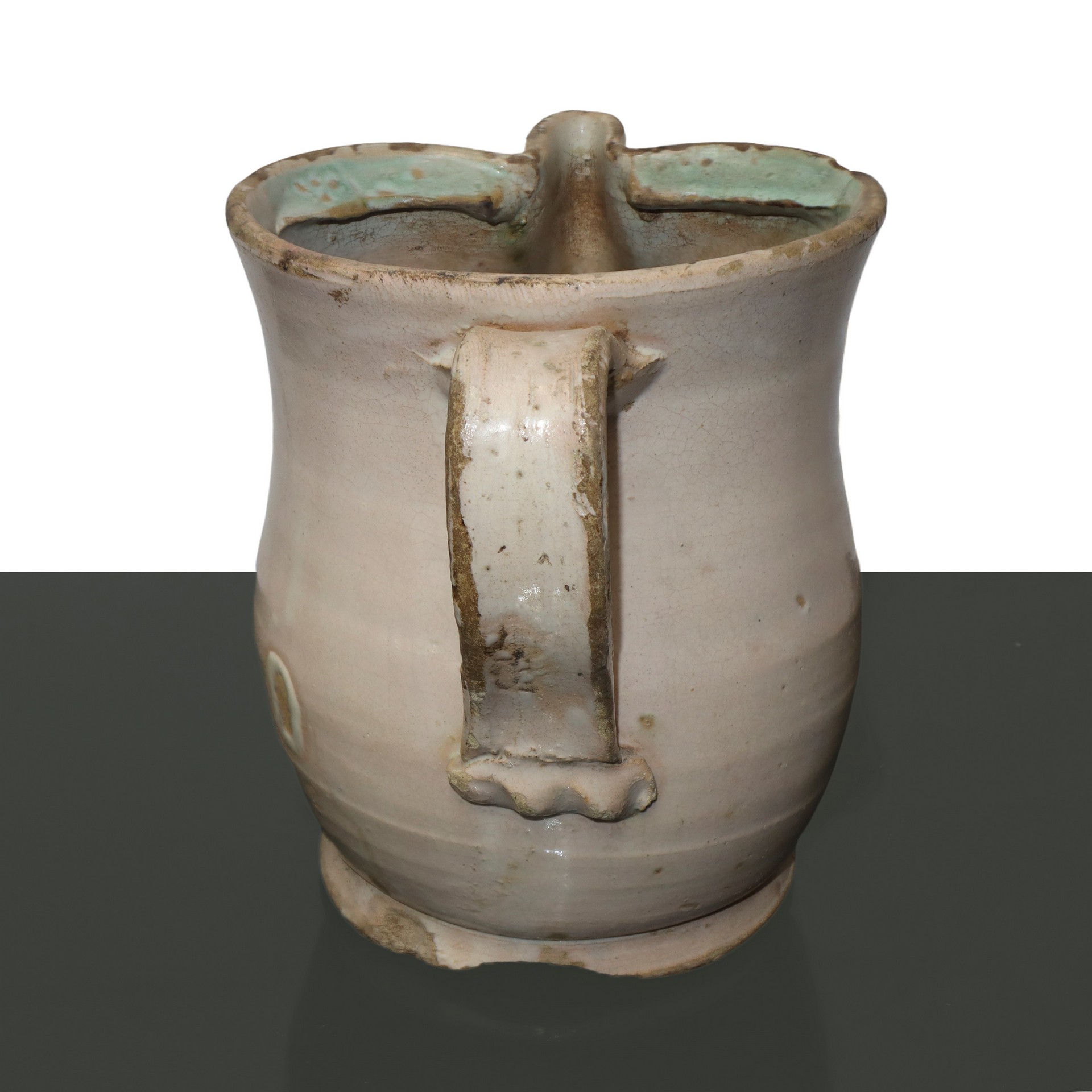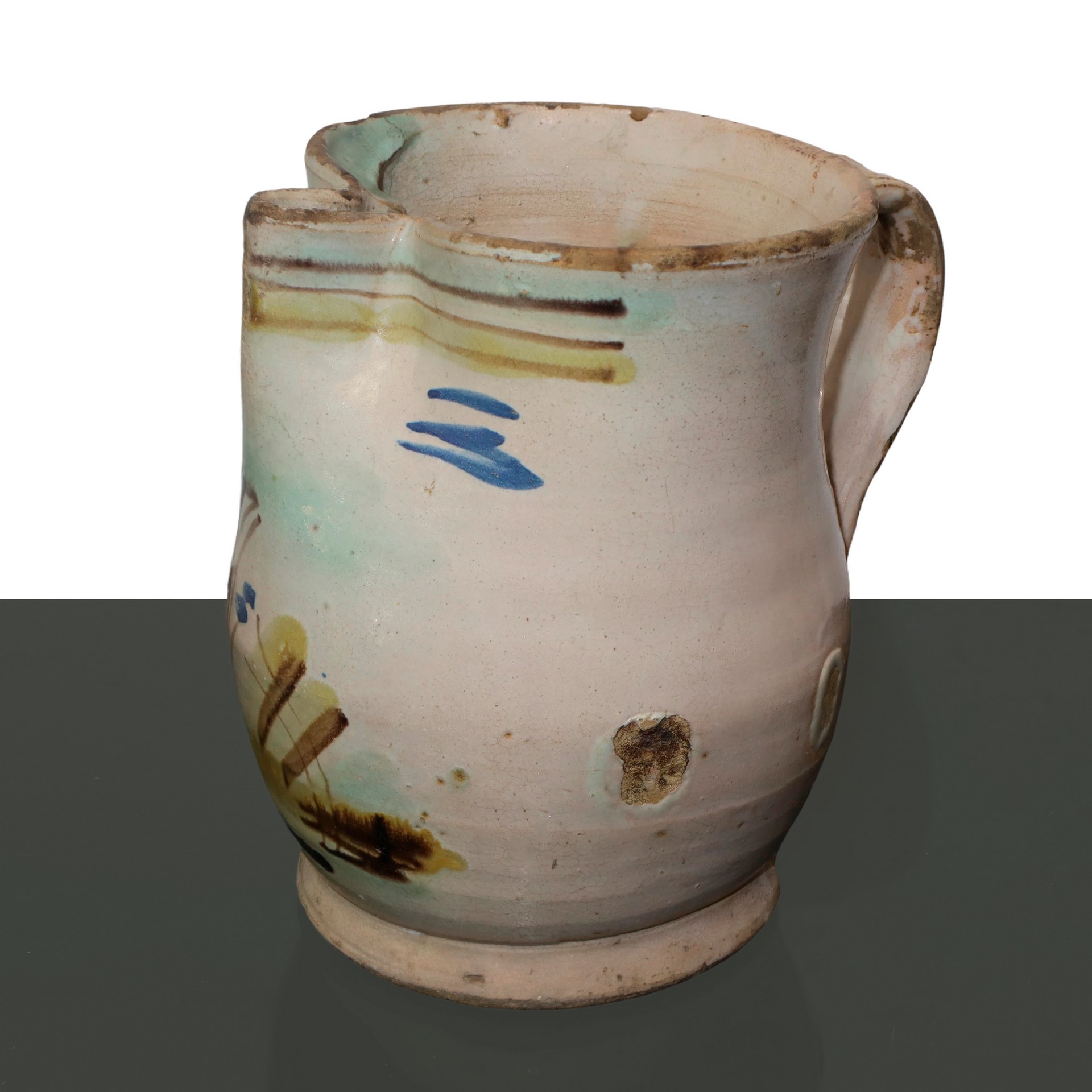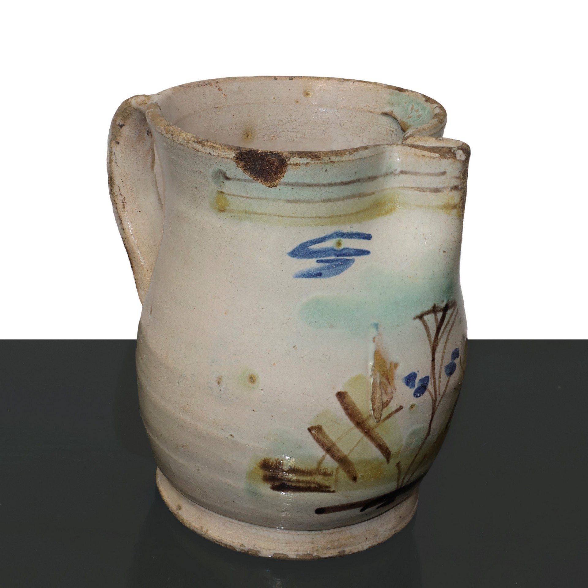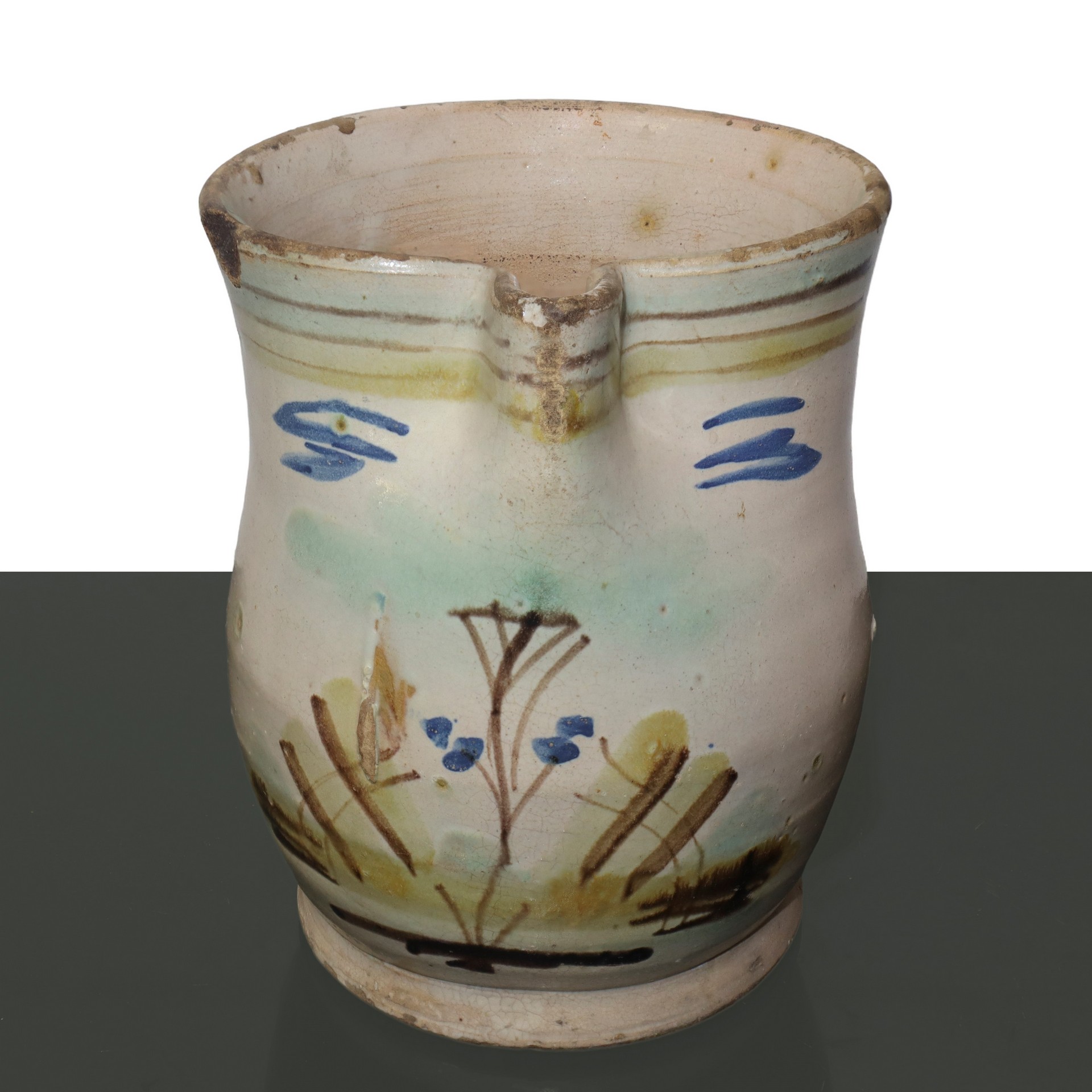 Cannata in maiolica policroma di Caltagirone, smaltata con decori di fiori , Tardo 19° secolo H cm 20