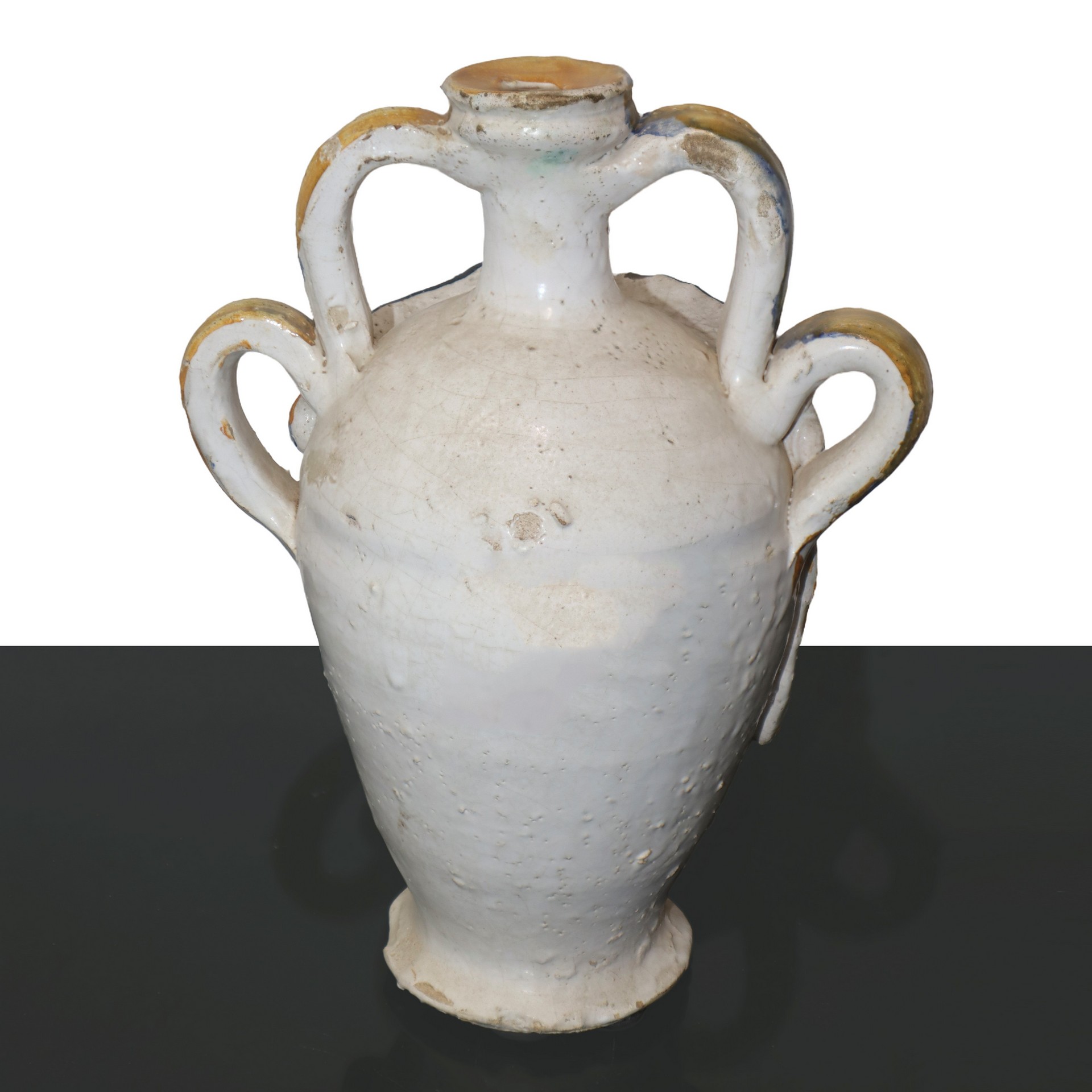 Lot 337 | Testa in maiolica policroma di Caltagirone, antropomorfa e con manici., Primi 20° secolo