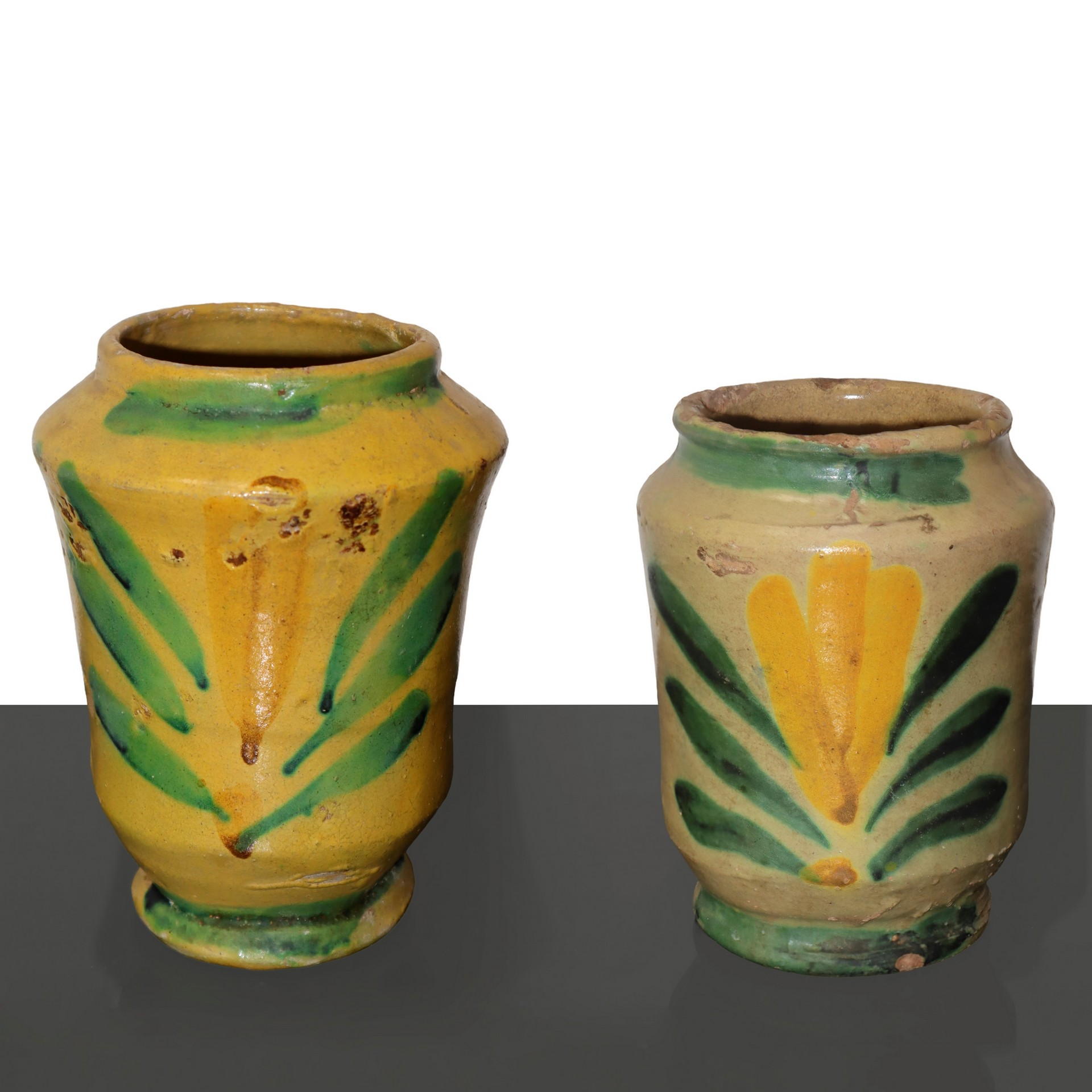 N. 2 vasetti Caltagirone, Tardo 19° secolo h cm 16 / h cm 15