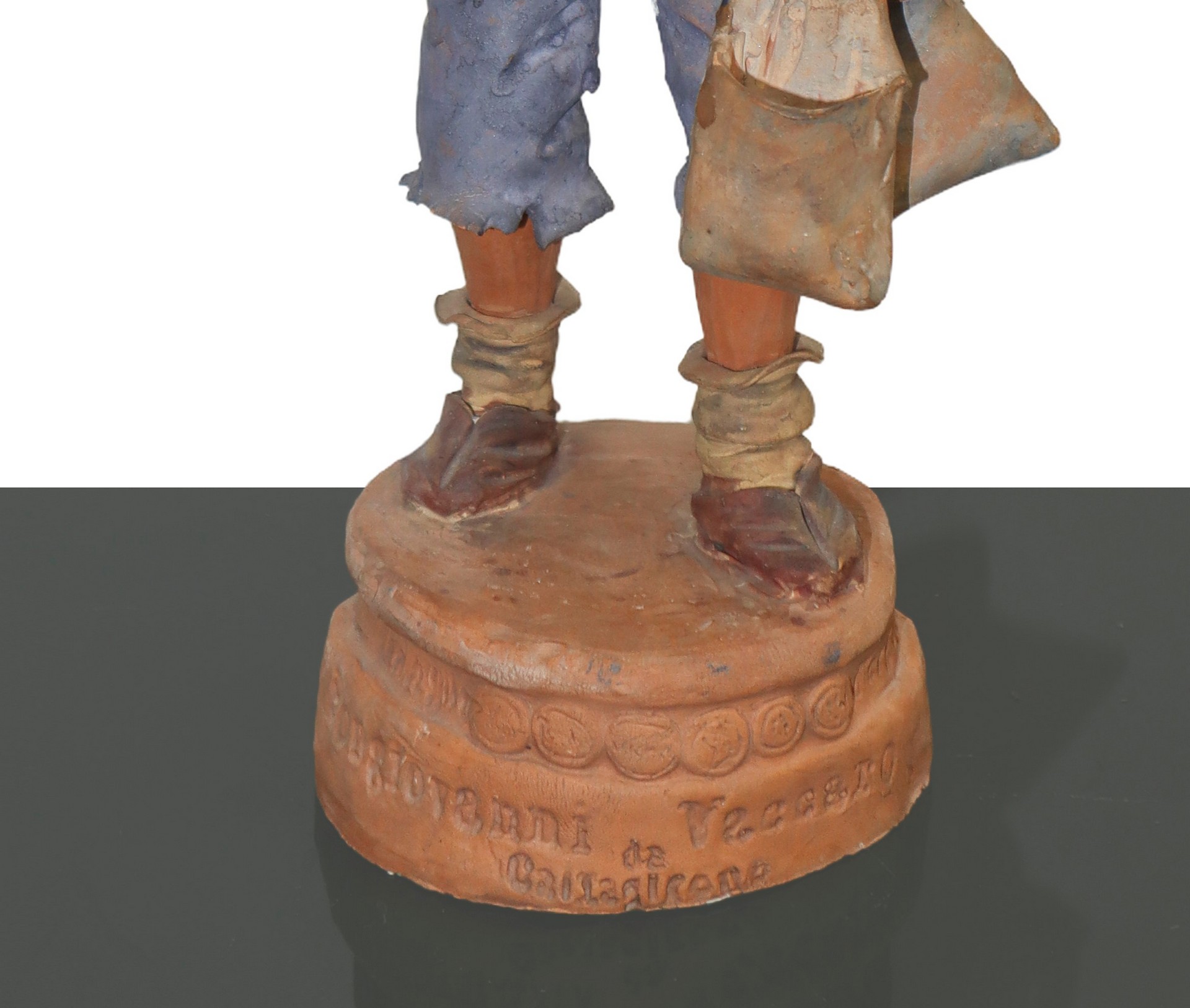 Bongiovanni Vaccaro (Caltagirone 1807-Caltagirone 28 novembre 1889) - Figurina policroma di Caltagirone, contadinocm 29Firmata sul fronteFirmata sul fronte