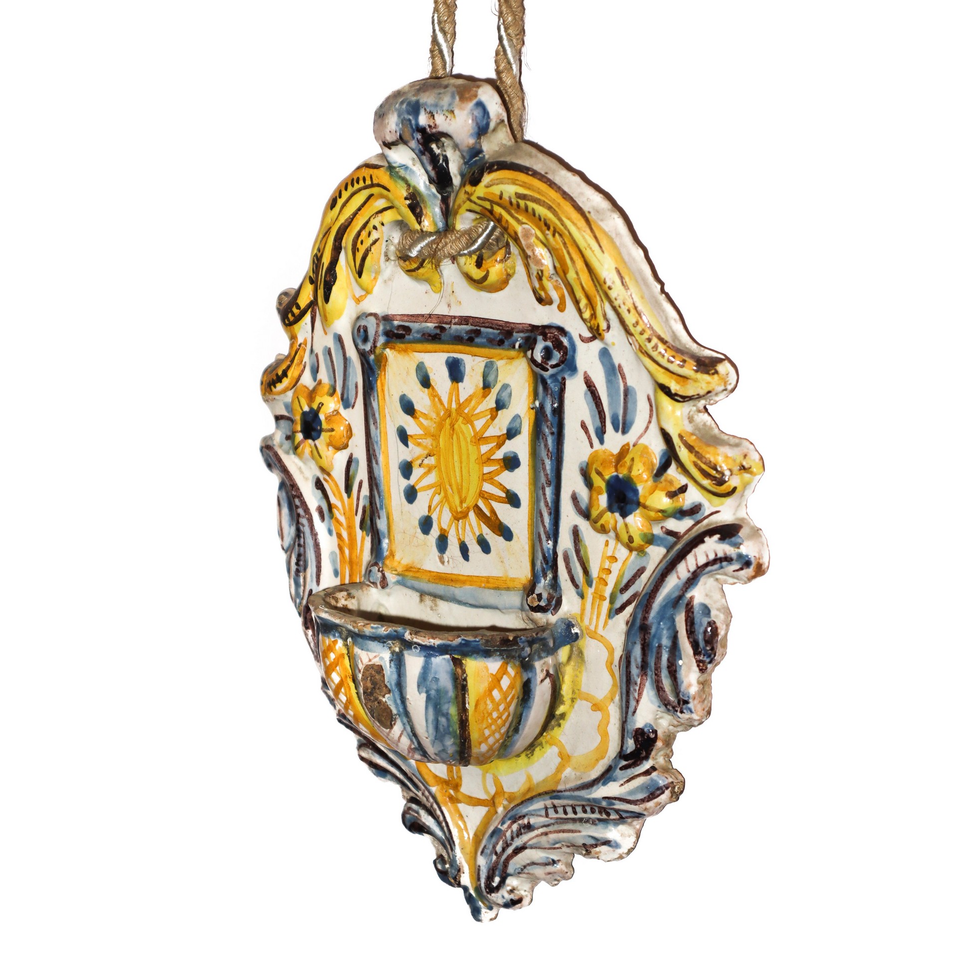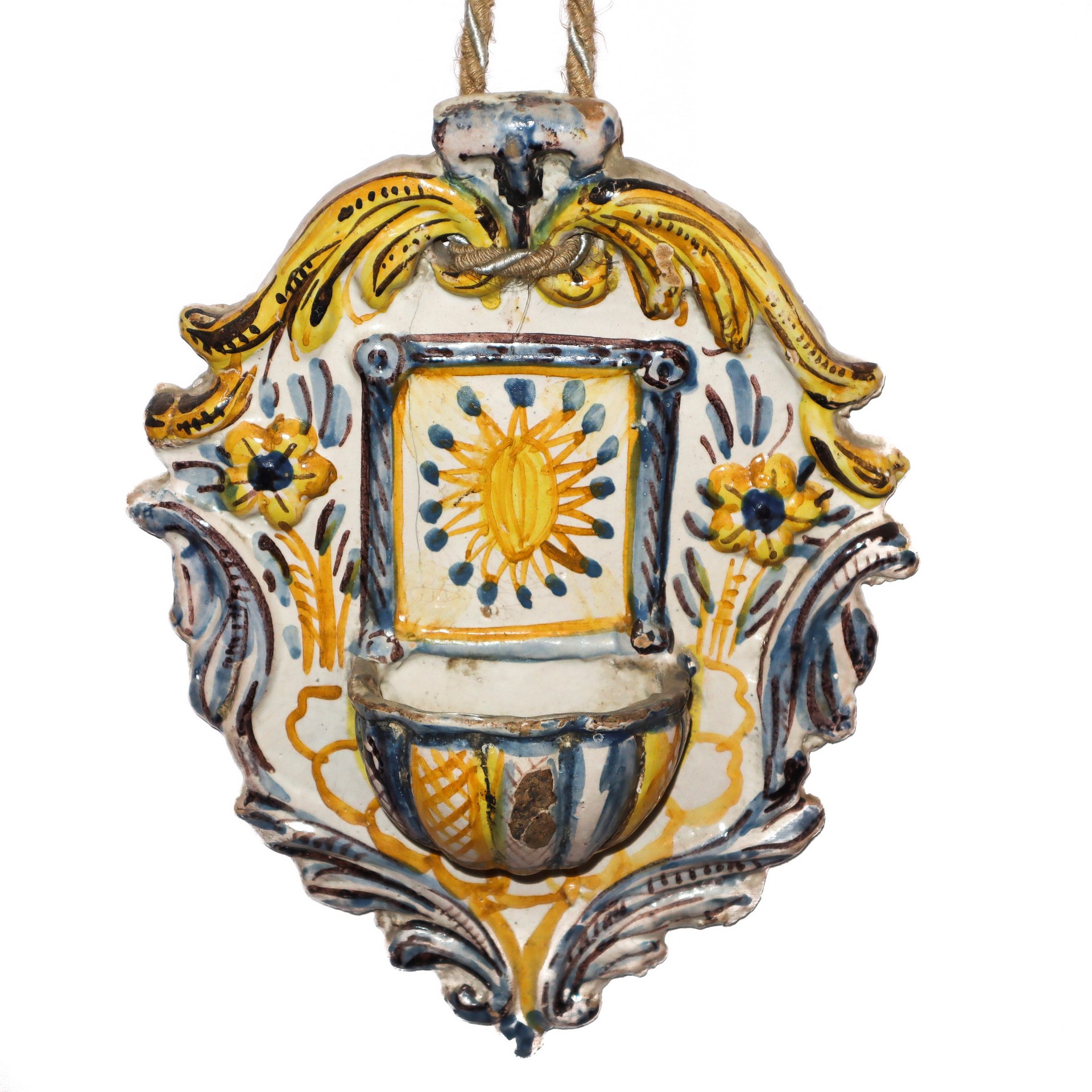 Acquasantiera in ceramica policroma, 18° secolo , Central Italy