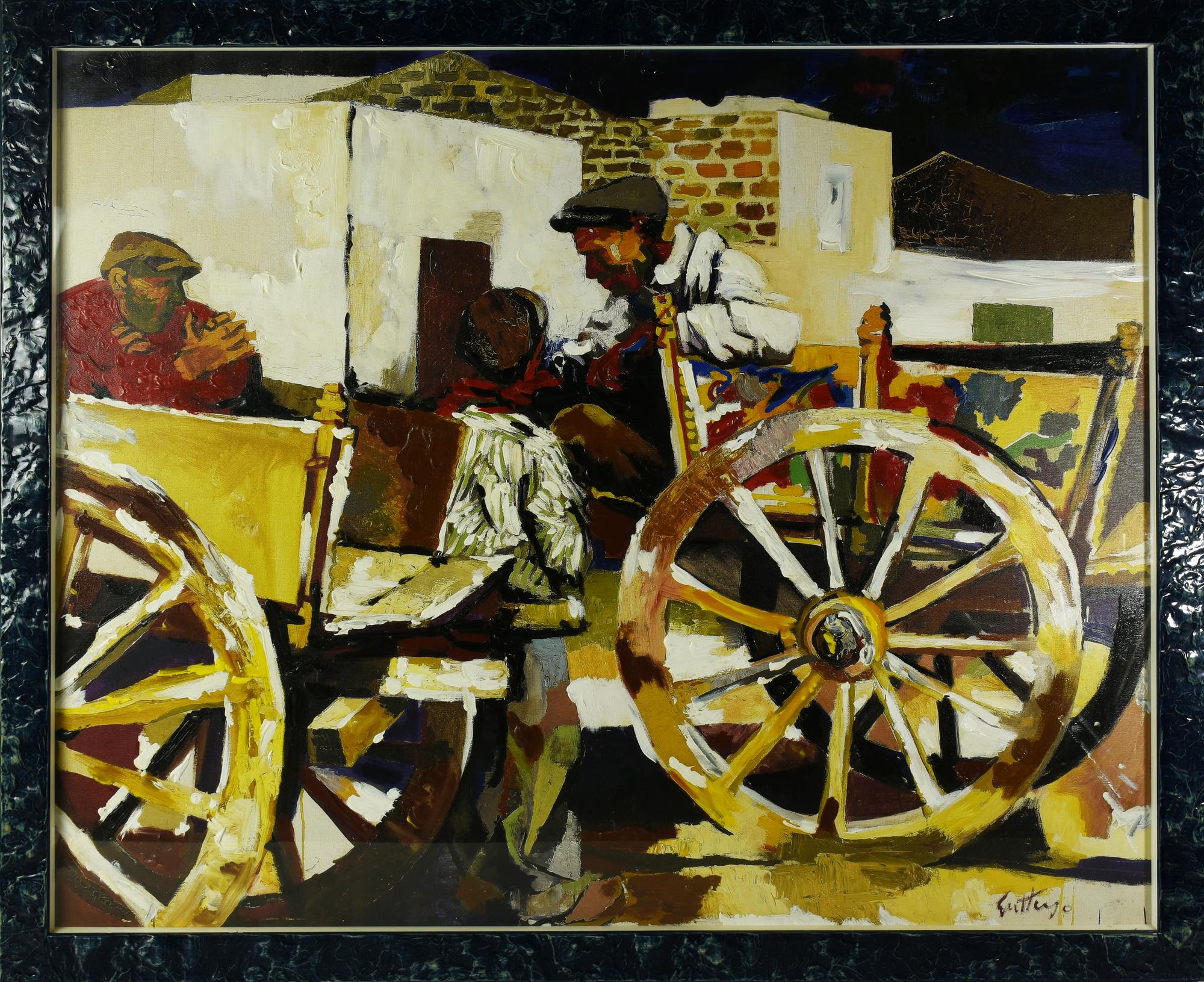 Lot 2 | Renato Guttuso UOMINI SUL CARRO stampa su tela con ritocchi in acrilico...