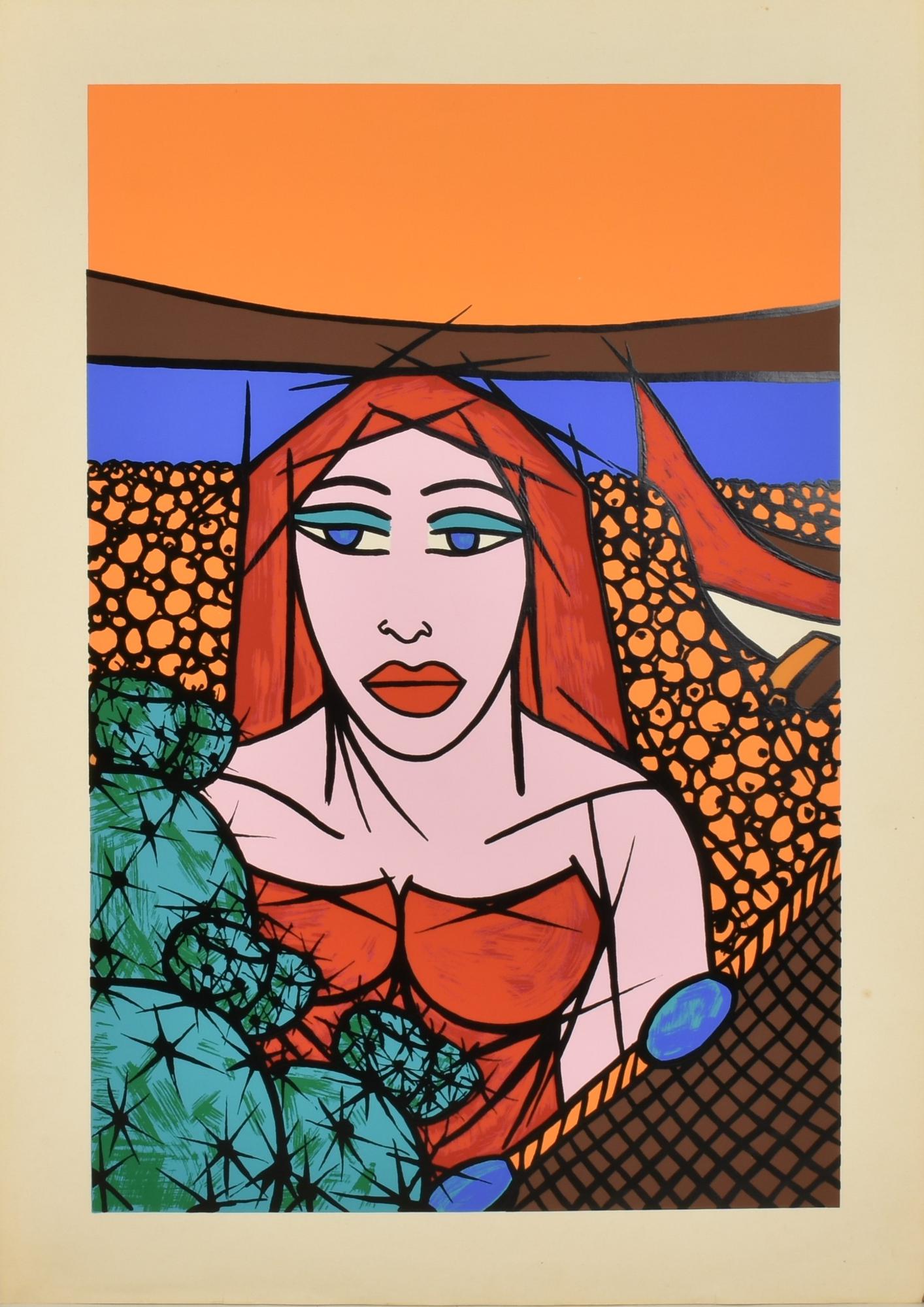 Ignoto RITRATTO FEMMINILE serigrafia su carta, cm 70x50