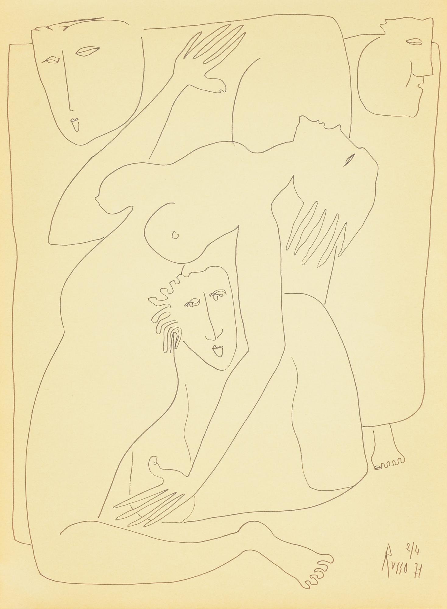 Russo CORPI RICURVI pennarello su carta, cm 40x30 firma e data eseguito nel 1971