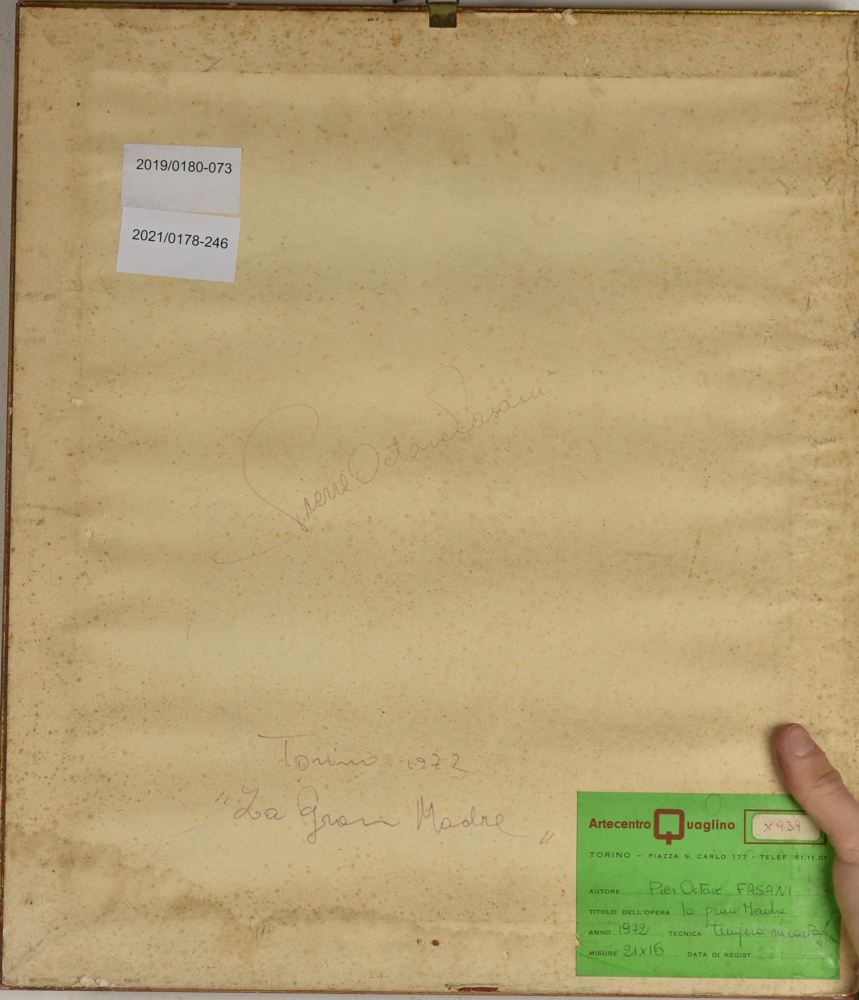 Lot 139 | Fasani LA GRAN MADRE tempera su carta,cm 22x16 firma sul retro: titolo, data,...