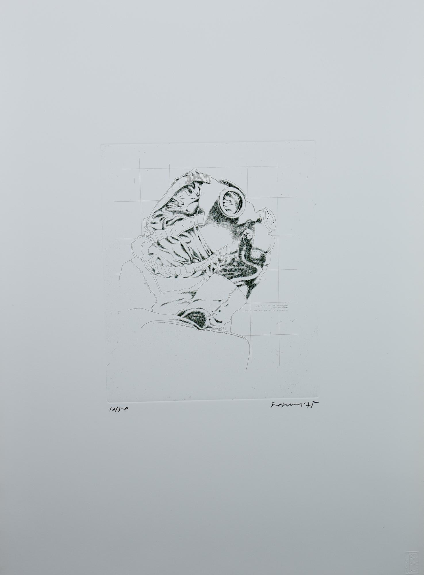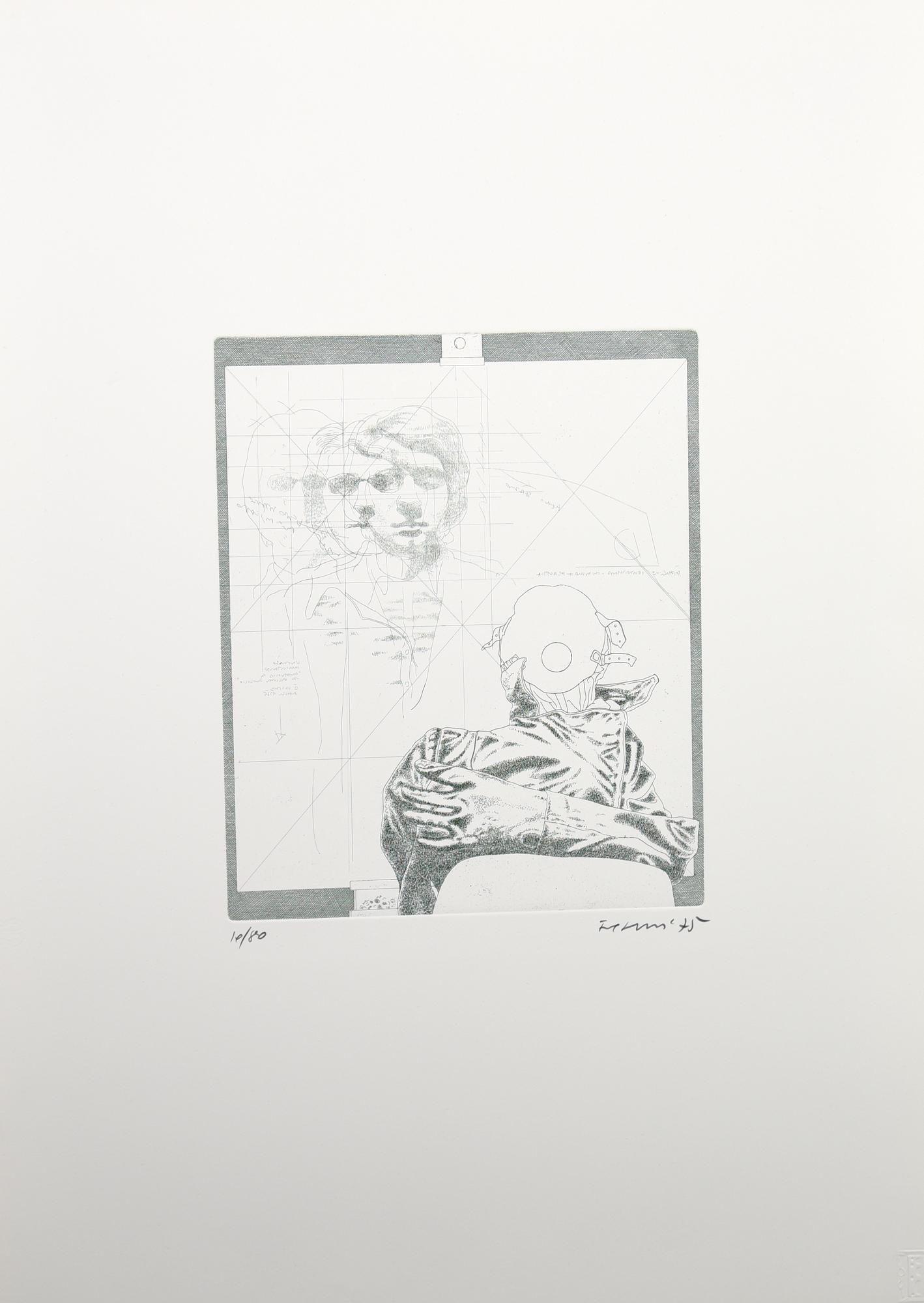cartella di 5 acquaforte, cm 29,5x24,5, su foglio cm 69,5x50; es. 10/80