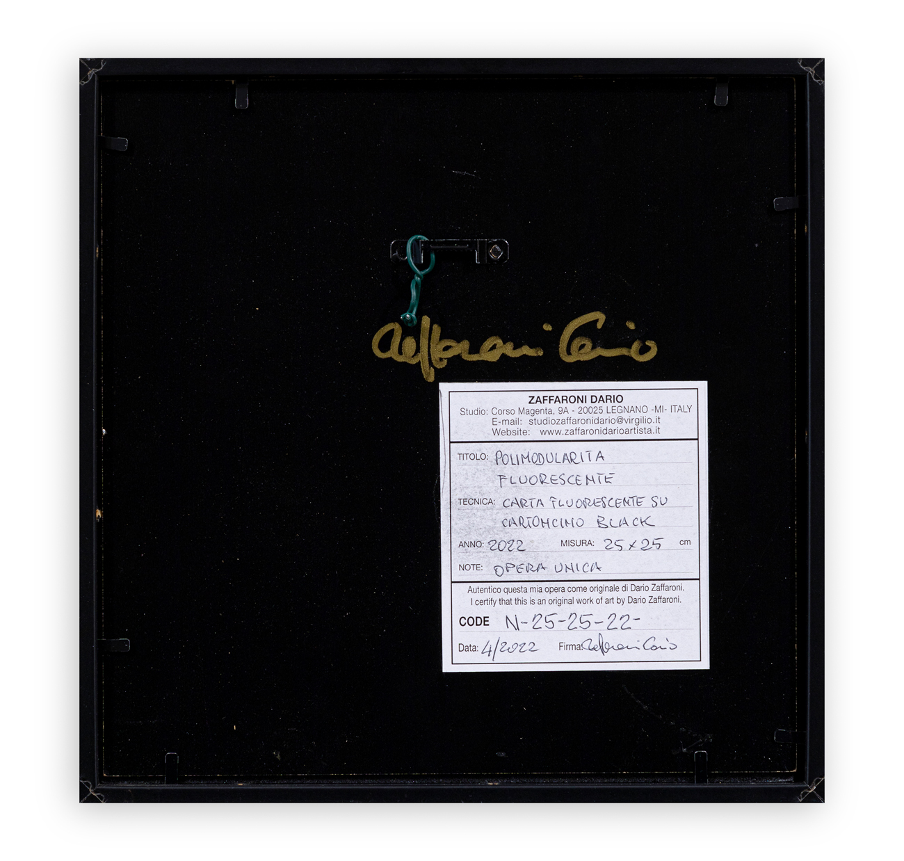 Etichetta dell'artista al retro