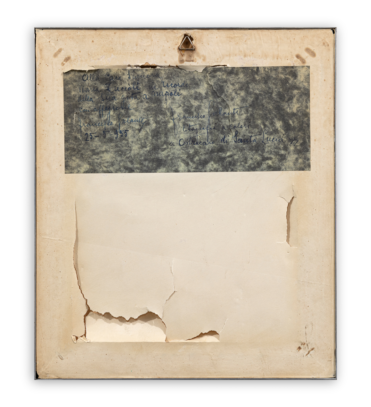 Dedica ad personam datata 1955 al retro del cartone protettivo