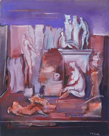 DI PRATA OSCAR (1910 - 2006) Senza titolo. Tecnica mista su tela. Cm 80,00 x 100,00. Firma in basso a destra. Lievi difetti. Cornice presente