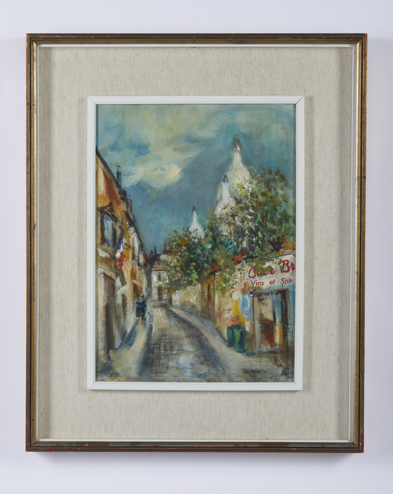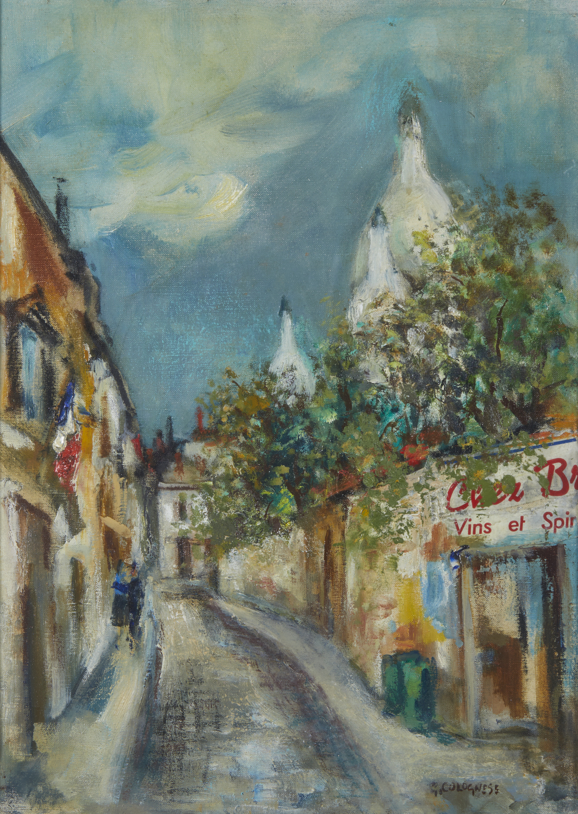 COLOGNESE GIOVANNI (n. 1901) Vecchia Montmartre. Olio su tela . Cm 33,00 x 46,00. Firma in basso a destra e titolo al retro.