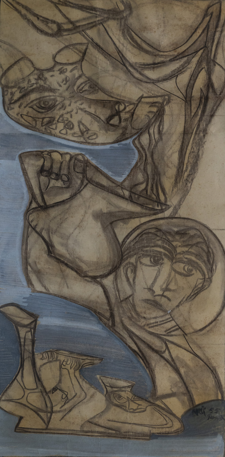 MELI SALVATORE (1929 - 2011) Senza titolo. mista su carta. Cm 61,00 x 110,00. Firma e anno in basso a destra.