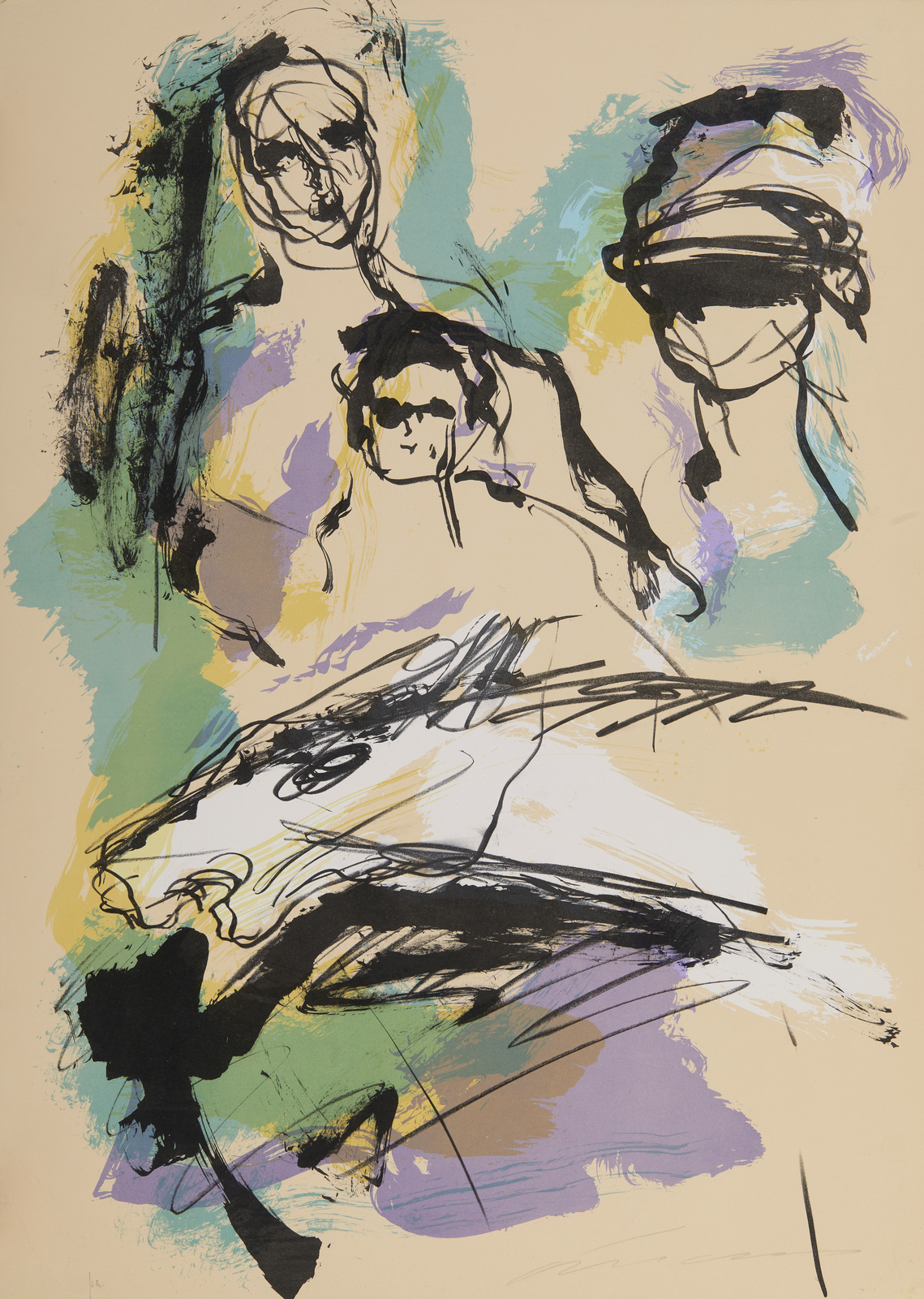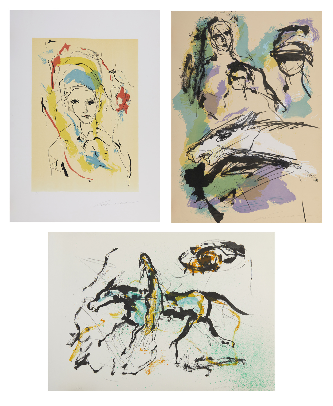 TRECCANI ERNESTO (1920 - 2009) Lotto composto da n. 3 fogli. Senza titolo. Litografia. Cm 50,00 x 70,00. P.a. Tiratura e firma in basso a matita. Dimensioni: 53x75 cm; 70x50 cm (x2). Lievi difetti.