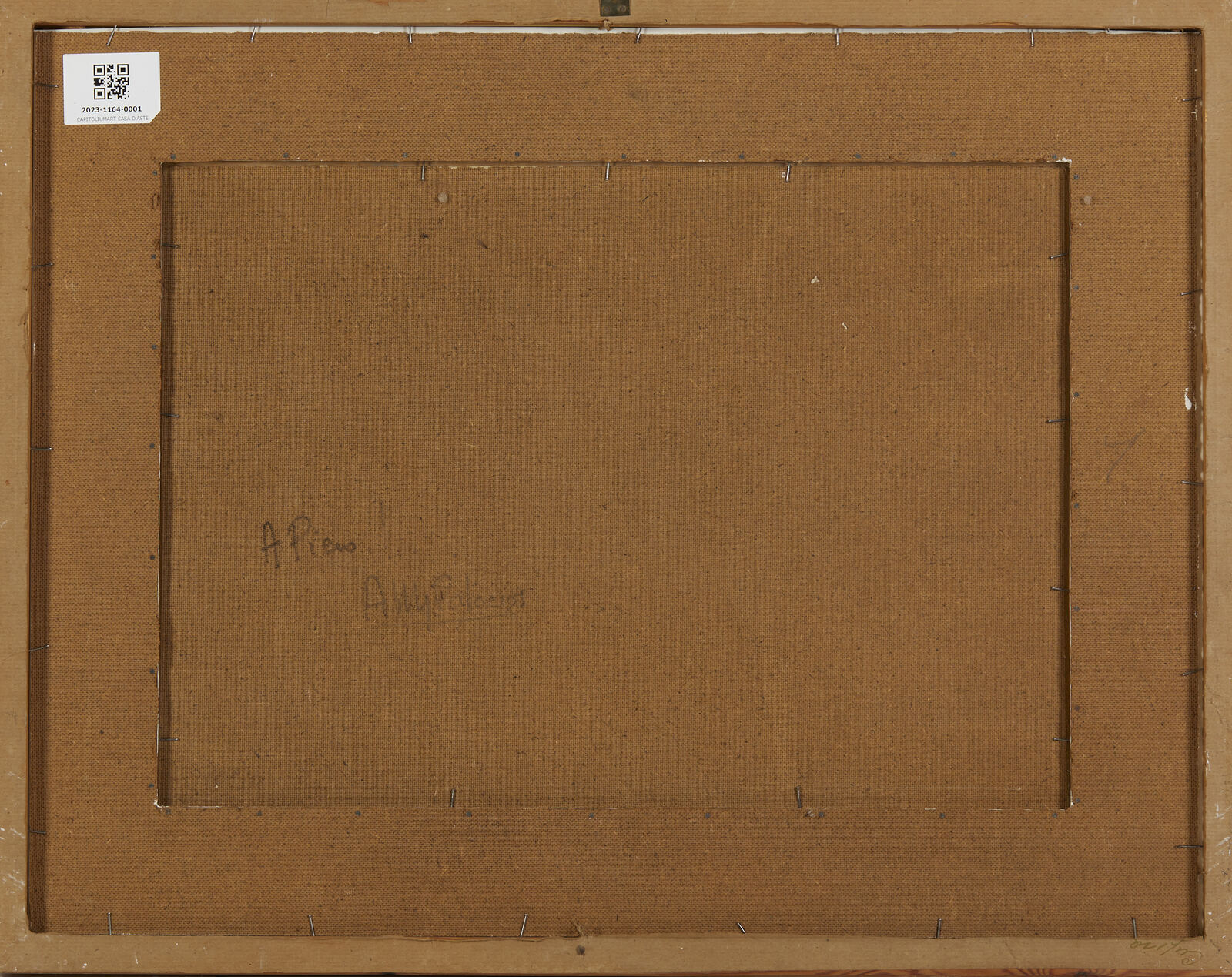 PALACIOS Y ANNAMARIA (1938 - 2013) Senza titolo. Olio su faesite. Cm 35,50 x 50,00. Firma in basso a sinistra. Al retro dedica e firma. Cornice presente