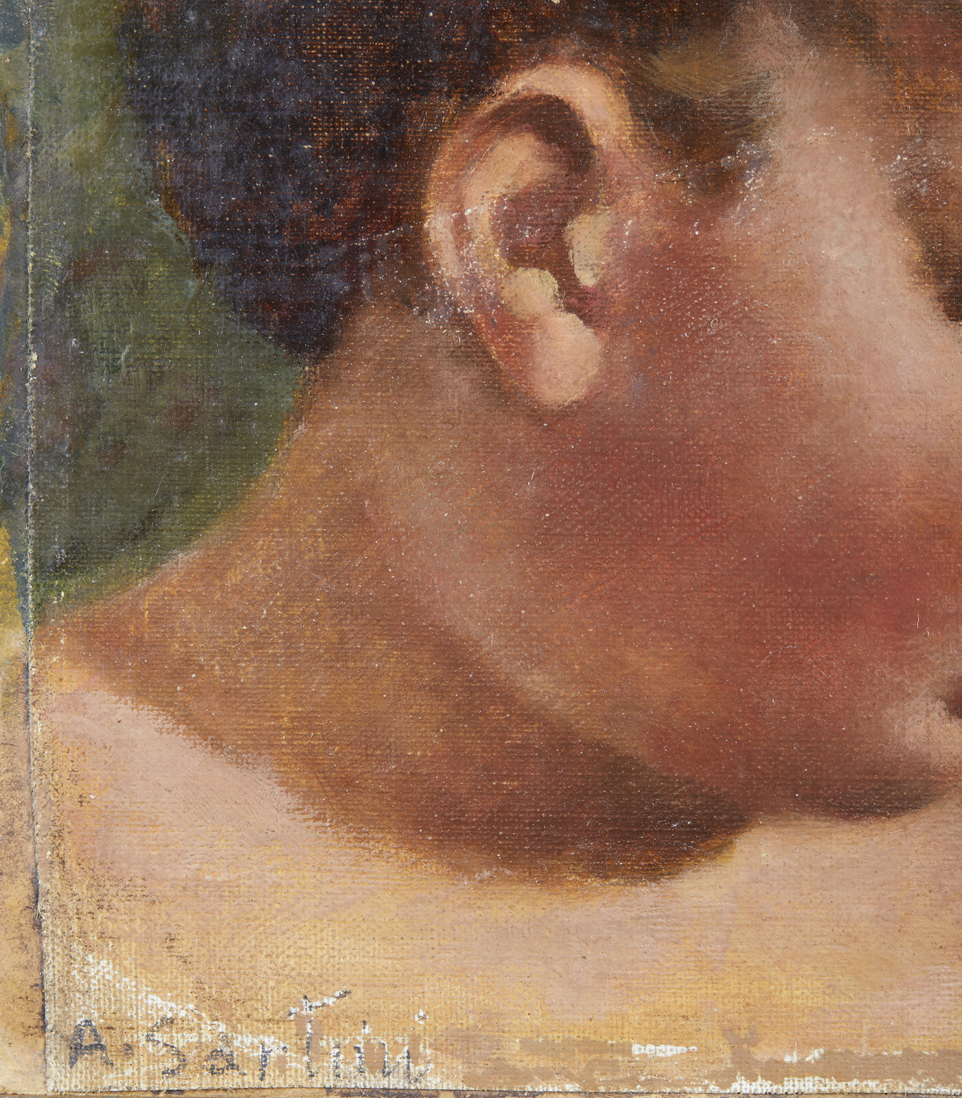 SARTINI ANTONIO (1889 - 1954) Ritratto di bimbo. Olio su cartone. Cm 19,20 x 25,50. Lievi difetti.