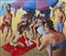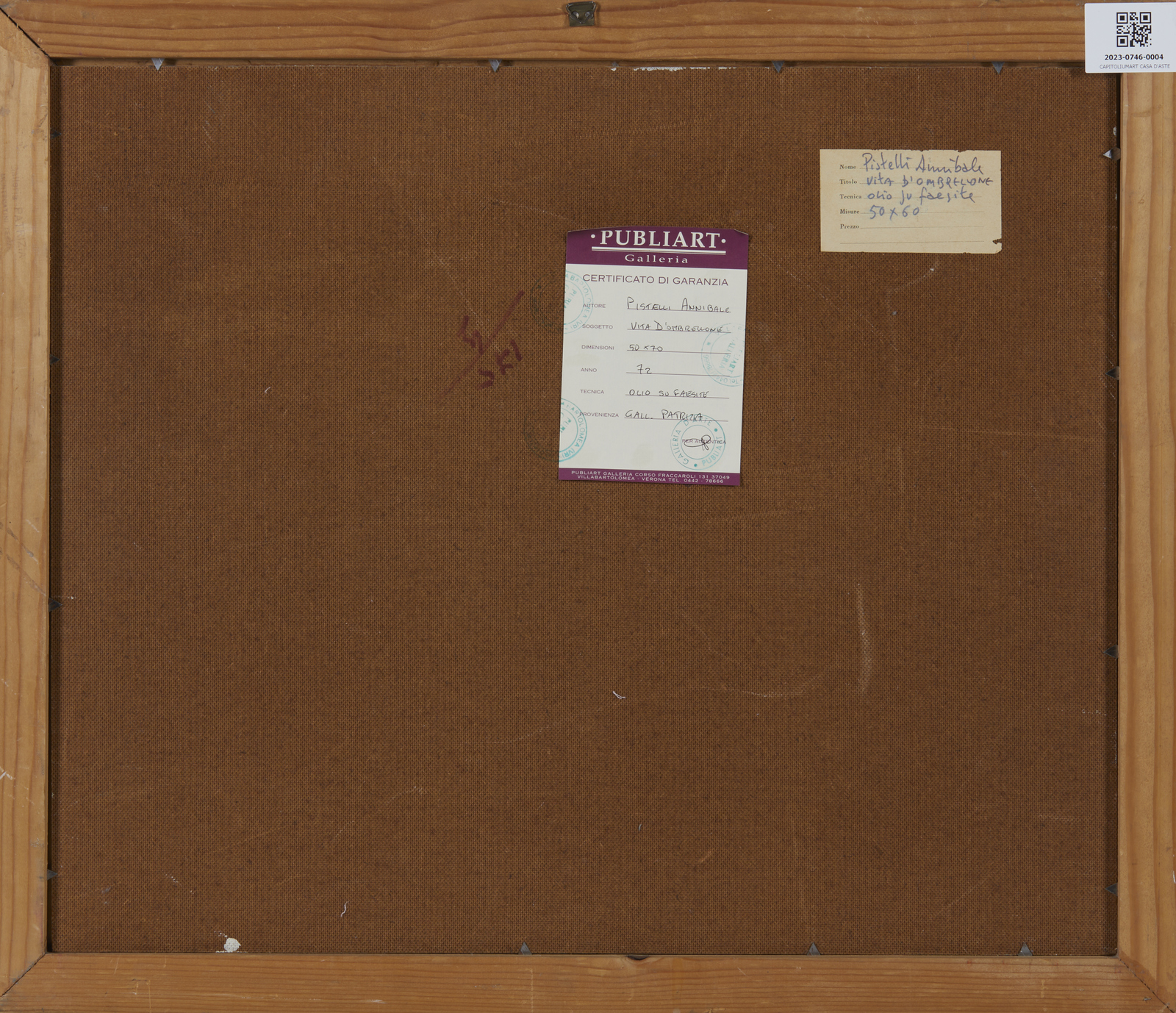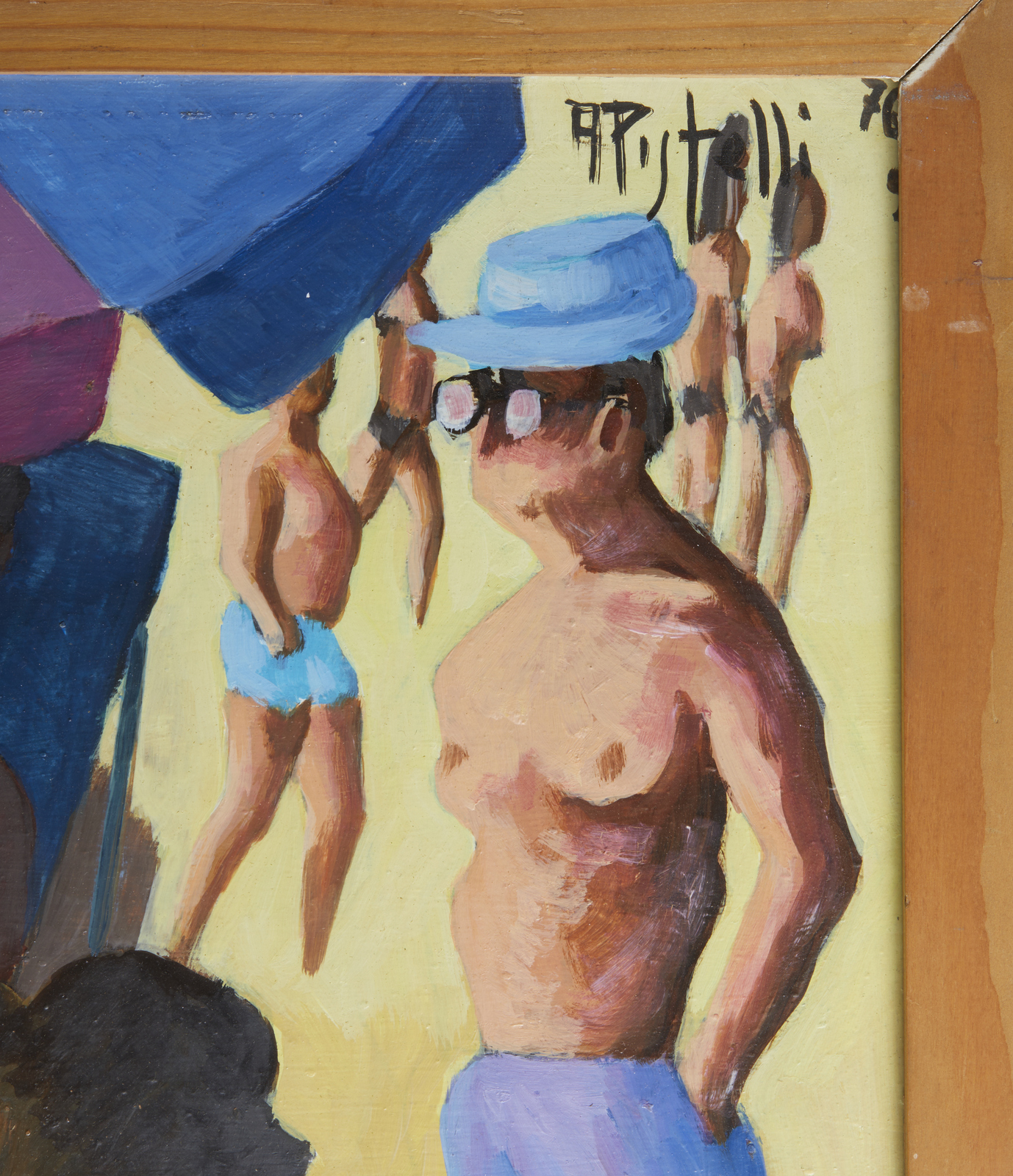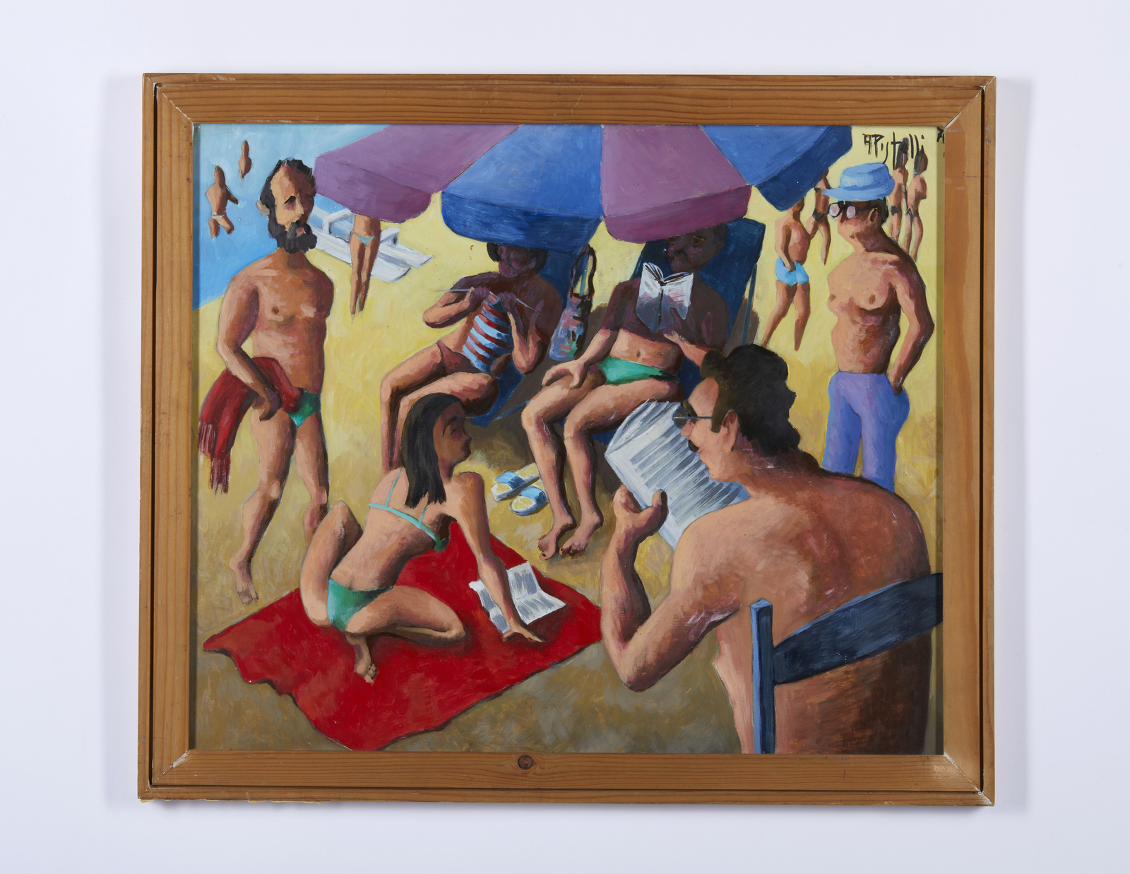 PISTELLI ANNIBALE (1915 - 1989) Vita d'ombrellone. 1976. Olio su faesite. Cm 60,00 x 50,00. Firma e anno in alto a sinistra. Al retro cartiglio descrittivo Galleria Publiart, Verona. . Cornice presente