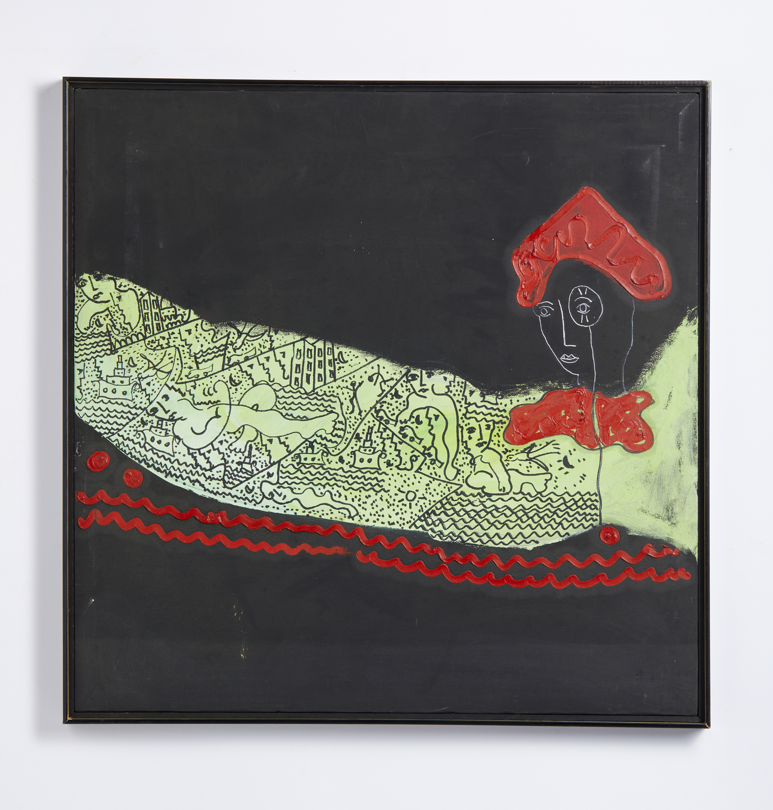 MAFONSO (1948 - 2019) Senza titolo. 1981. Tecnica mista su tela. Cm 60,00 x 60,00. Al retro firma e anno. Pubblicazioni: Mafonso, S. Orienti, Edizioni Meinrad, Camenzin-Svizzera, 1982. Lievi difetti. Cornice presente