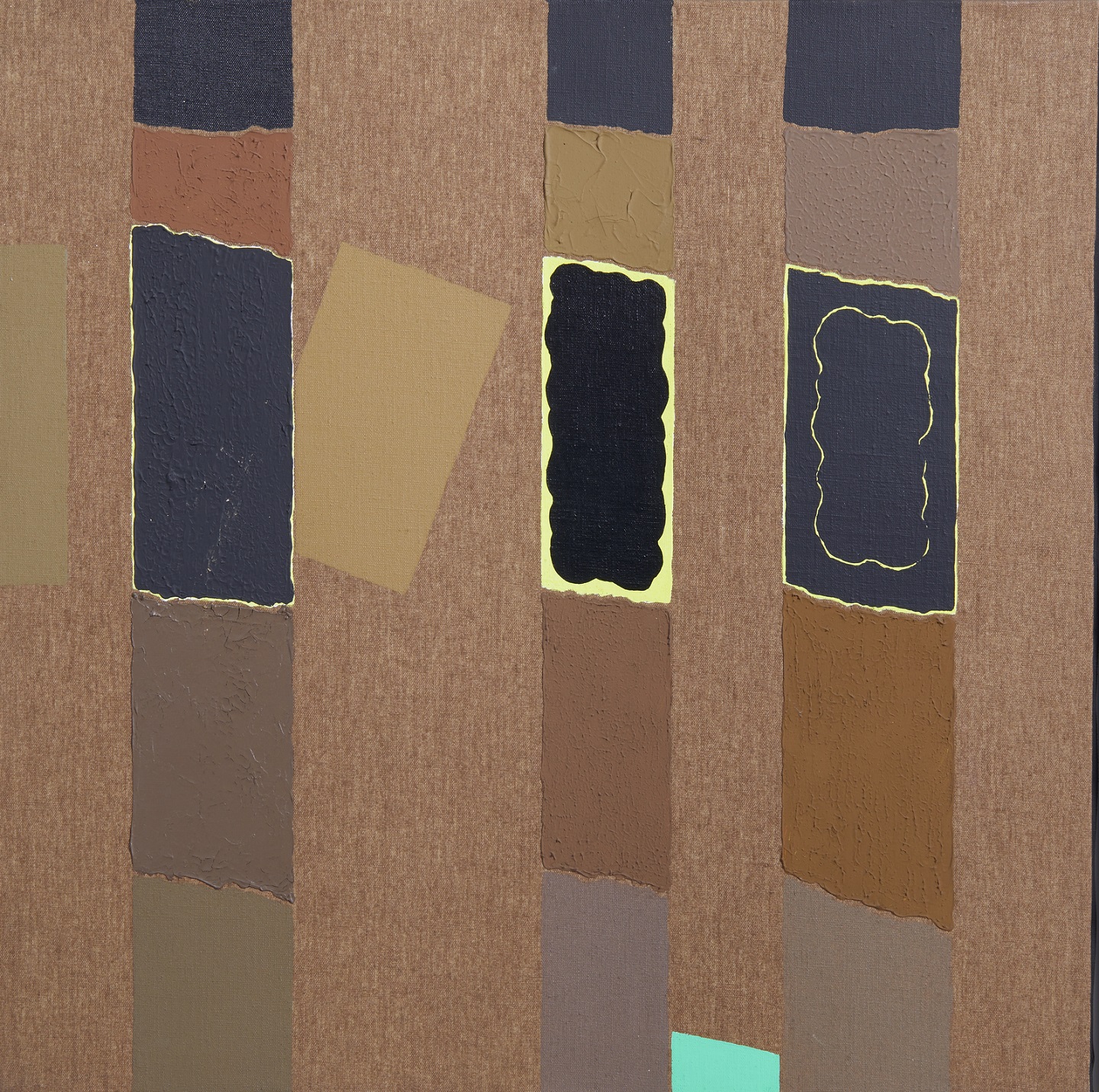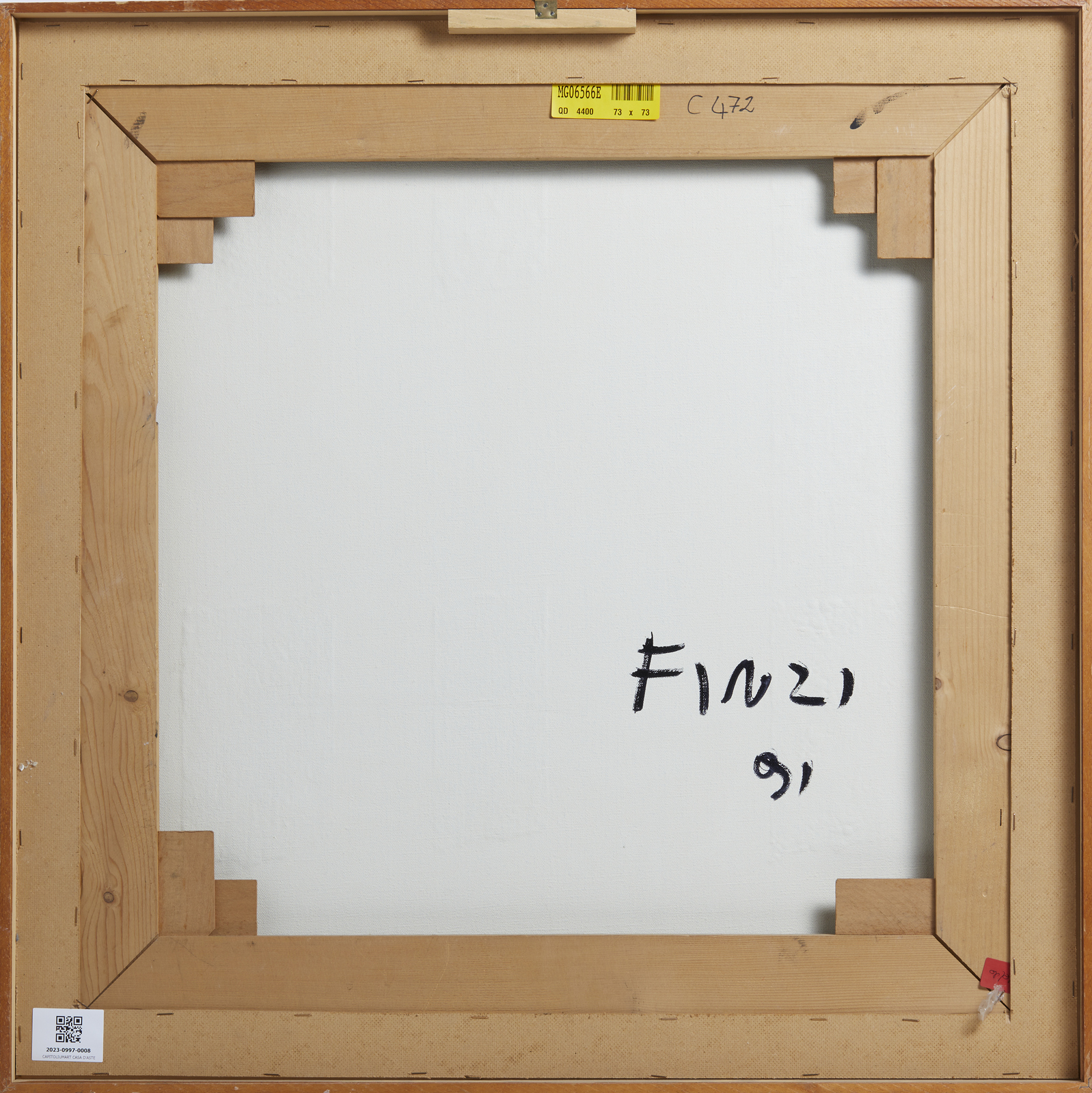 FINZI ENNIO (n. 1931) Senza titolo. . 1991. Olio su tela . Cm 73,00 x 73,00. Al retro firma e anno. Opera archiviata presso la Galleria d'Arte Dante Vecchiato, Padova, come da documentazione fotografica allegata all'opera riportante il relativo numero d'inventario. Certificato di provenienza Telemarket, Brescia. Cornice presente