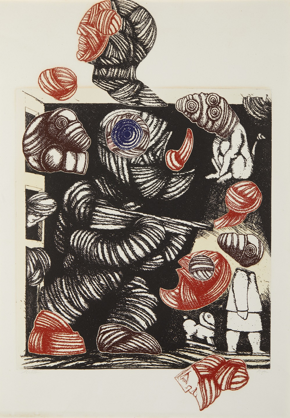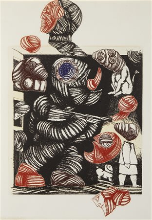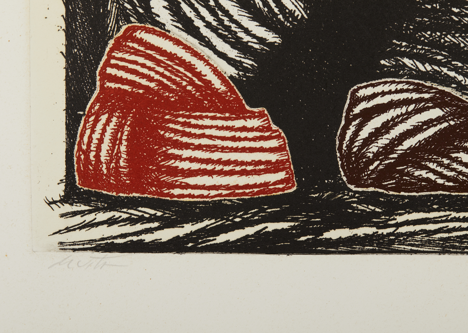 DE VITA LUCIANO (1929 - 1992) Un giorno di bontà. Acquaforte a colori. Cm 54,00 x 73,00. P.A. Tiratura e firma in basso a matita. Edizione totale: 100+XX+p.a. esemplari. Dimensione lastra: 72x44 cm Incisione eseguita per Ducati Elettrotecnica Microfarad s.p.a. . Cornice presente