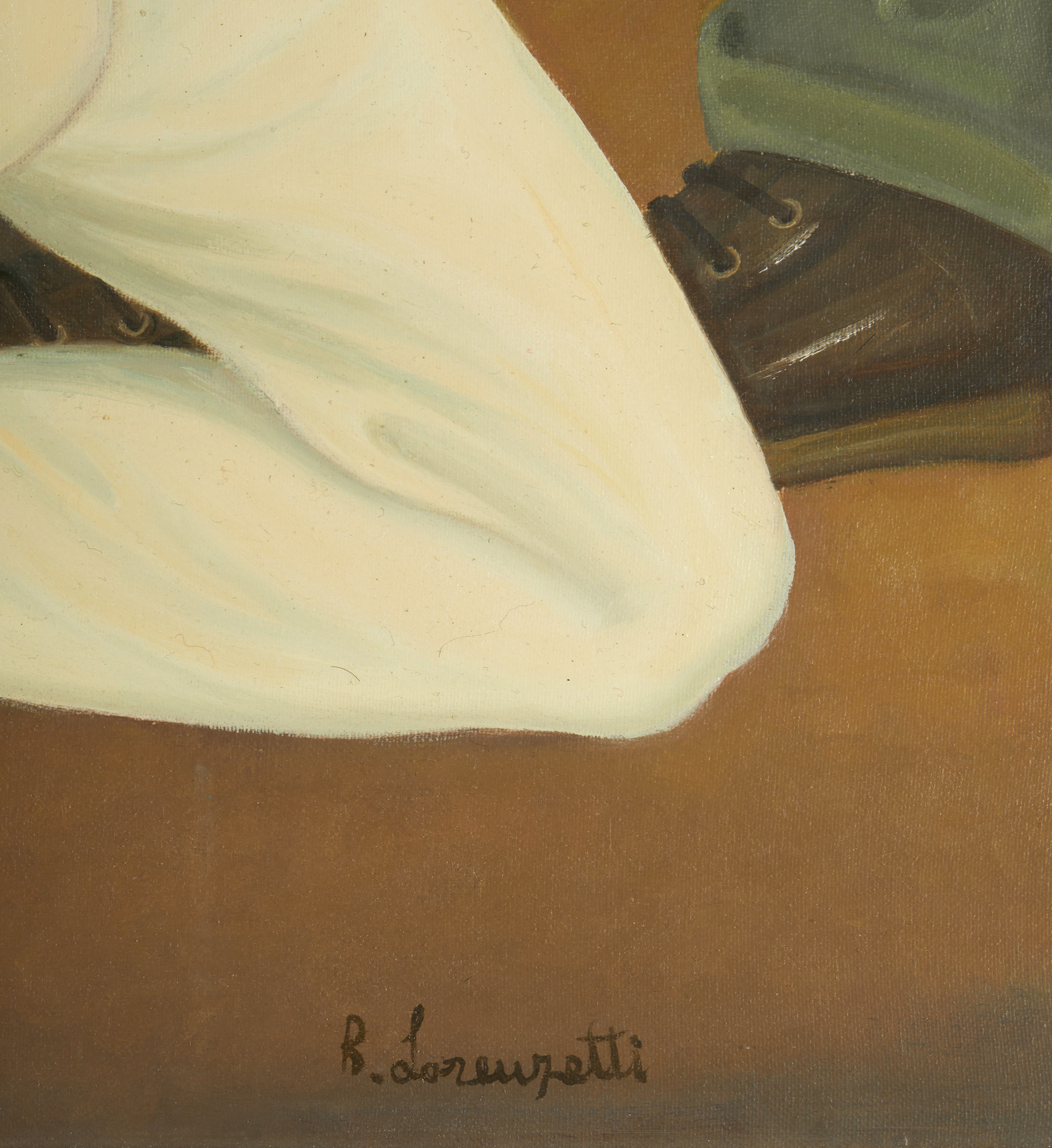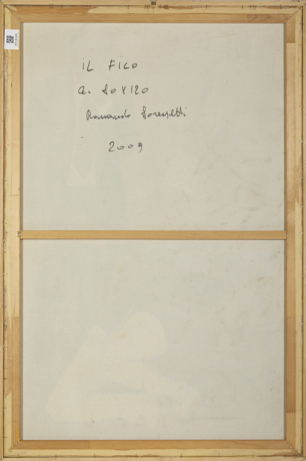LORENZETTI RAIMONDO (n. 1948) In filo. 2009. Olio su tela . Cm 78,50 x 119,00. Firma in basso a destra. Al retro titolo, firma e anno. Cornice presente