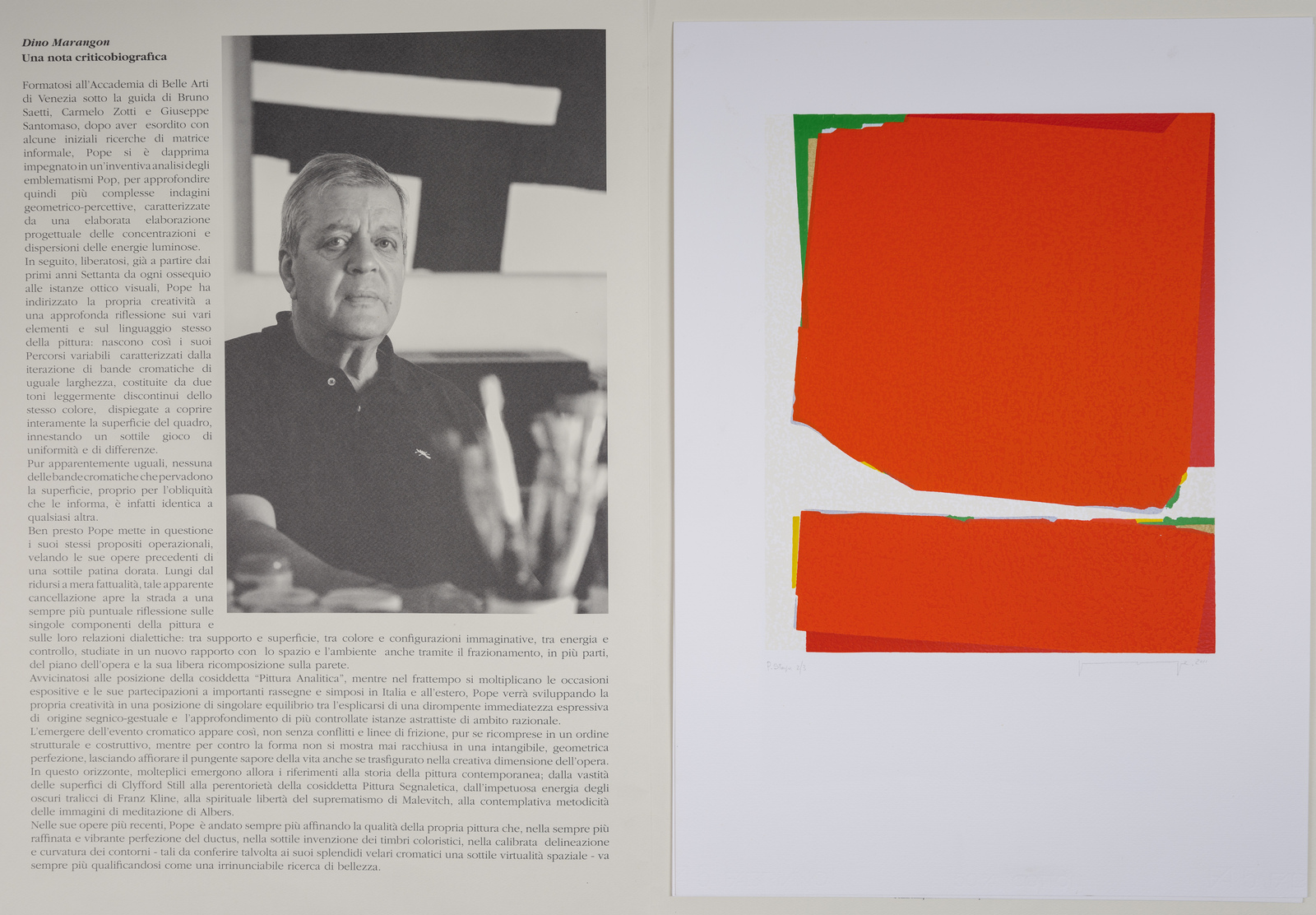 POPE (GIUSEPPE GALLI) (n. 1942) Lotto composto da n.3 fogli. Senza titolo. . 2011. Serigrafia. Cm 47,00 x 65,00. P. stampa 2/3; P.c. 3/3; P.c. 2/3. Tiratura, firma e anno in basso a matita. Editore: Euromobil Arte, Falzè di Piave. Carta Fabriano.