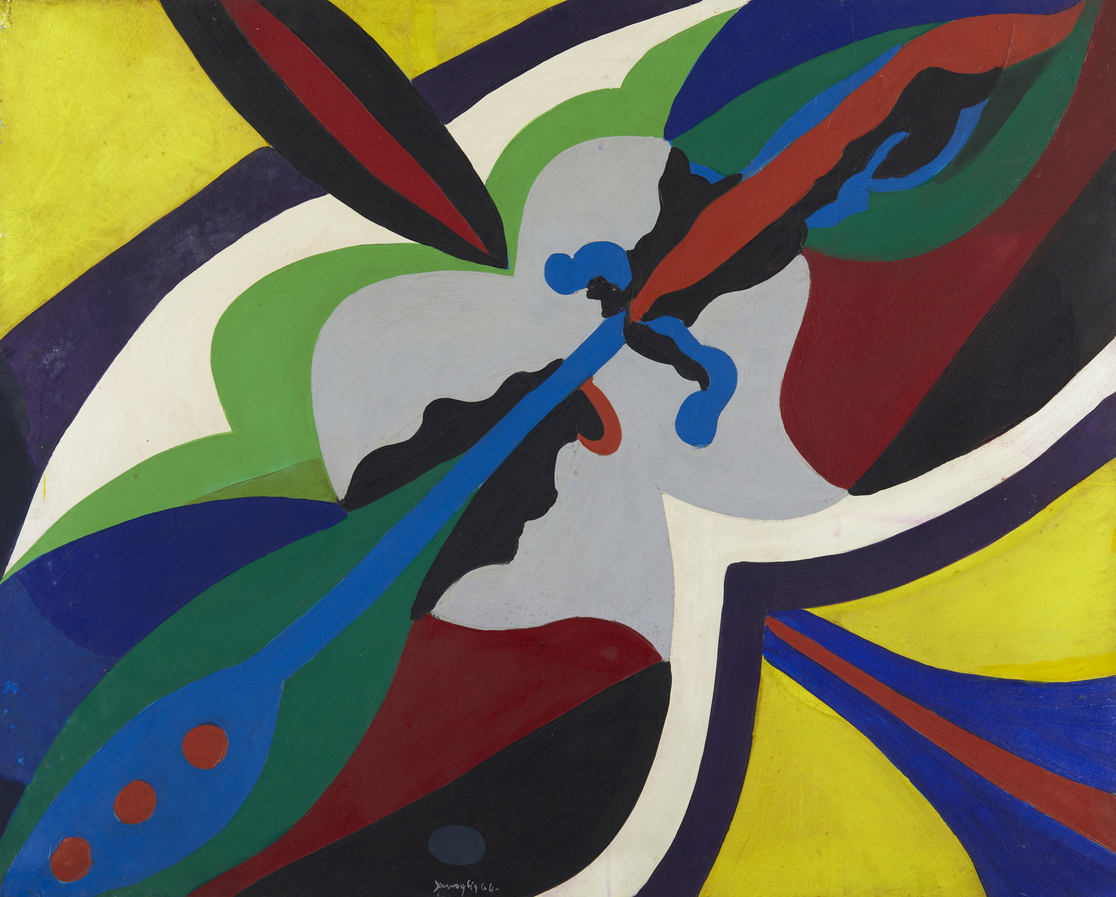 SERNAGLIA RINO (n. 1936) Nucleo centrale. 1966. Acrilico su tela. Cm 100,00 x 80,00. Firma in basso al centro. Al retro titolo, firma e anno. Difetti.