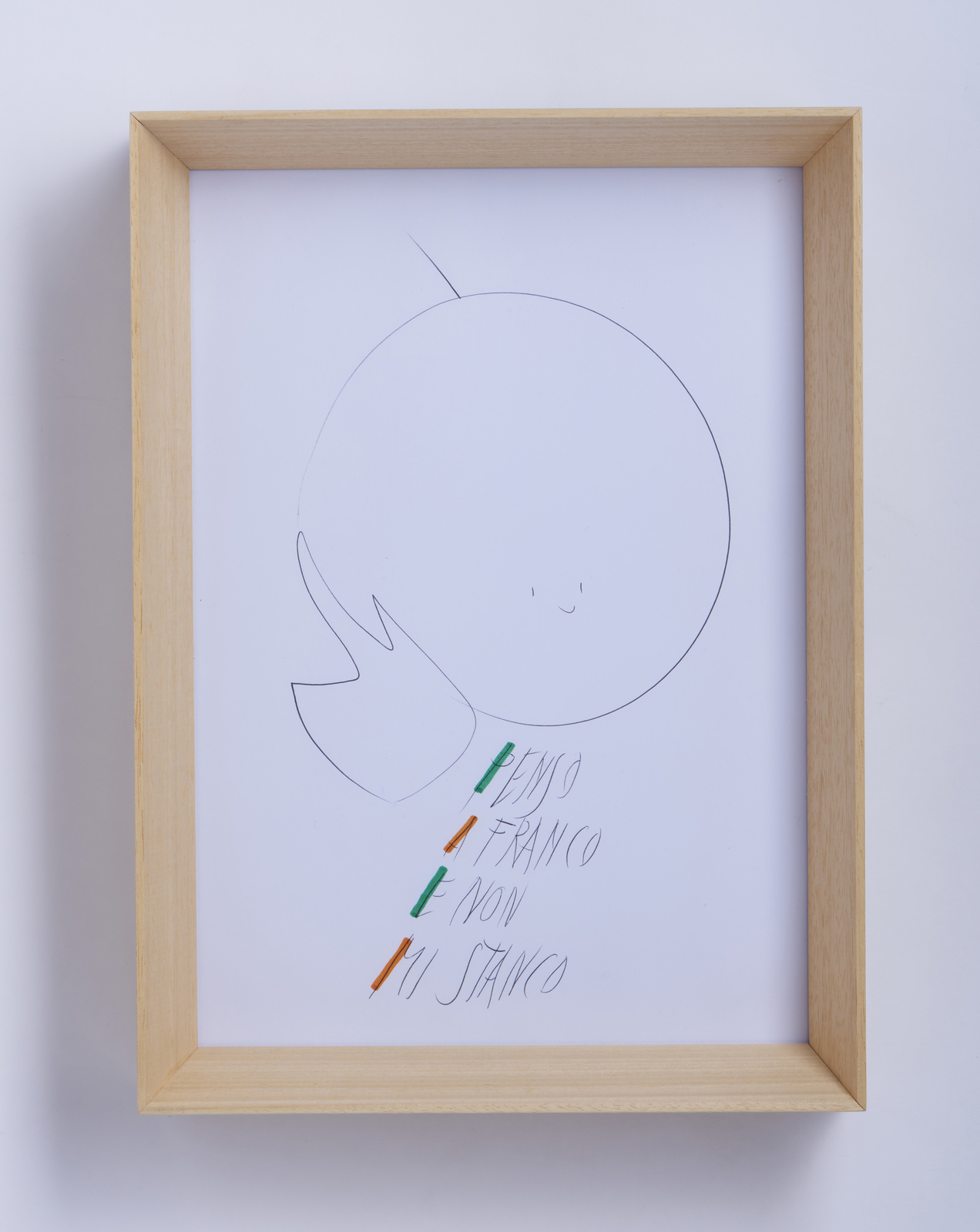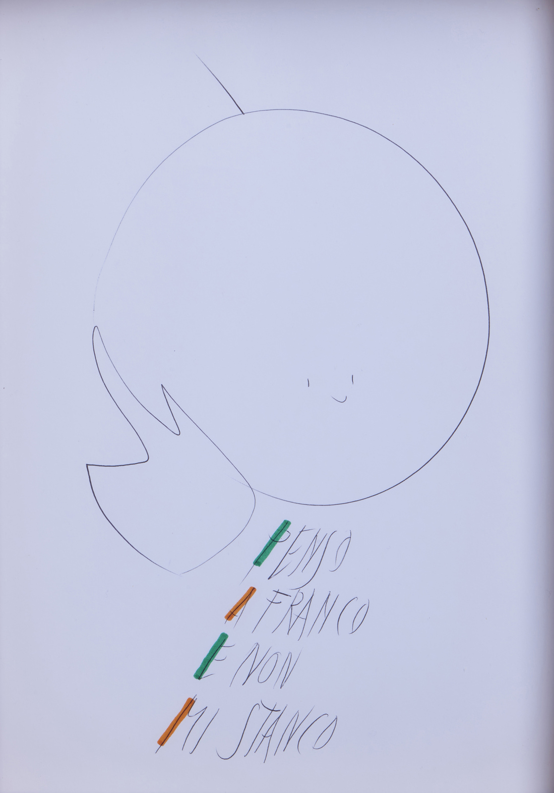LICITRA PONTI LISA (1922 - 2019) Penso a Franco e non mi stanco. Tecnica mista su carta. Cm 21,00 x 30,00. Titolo in basso. Sitografia: https://triennale.org/eventi/lisa-ponti-disegni-voci . Cornice presente