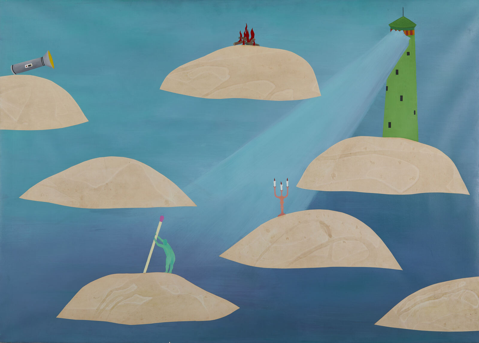 CASPANI ROBERTO (n. 1951) Il Naufrago. 1981. Acrilico su tela. Cm 140,00 x 100,00. Al retro firma.