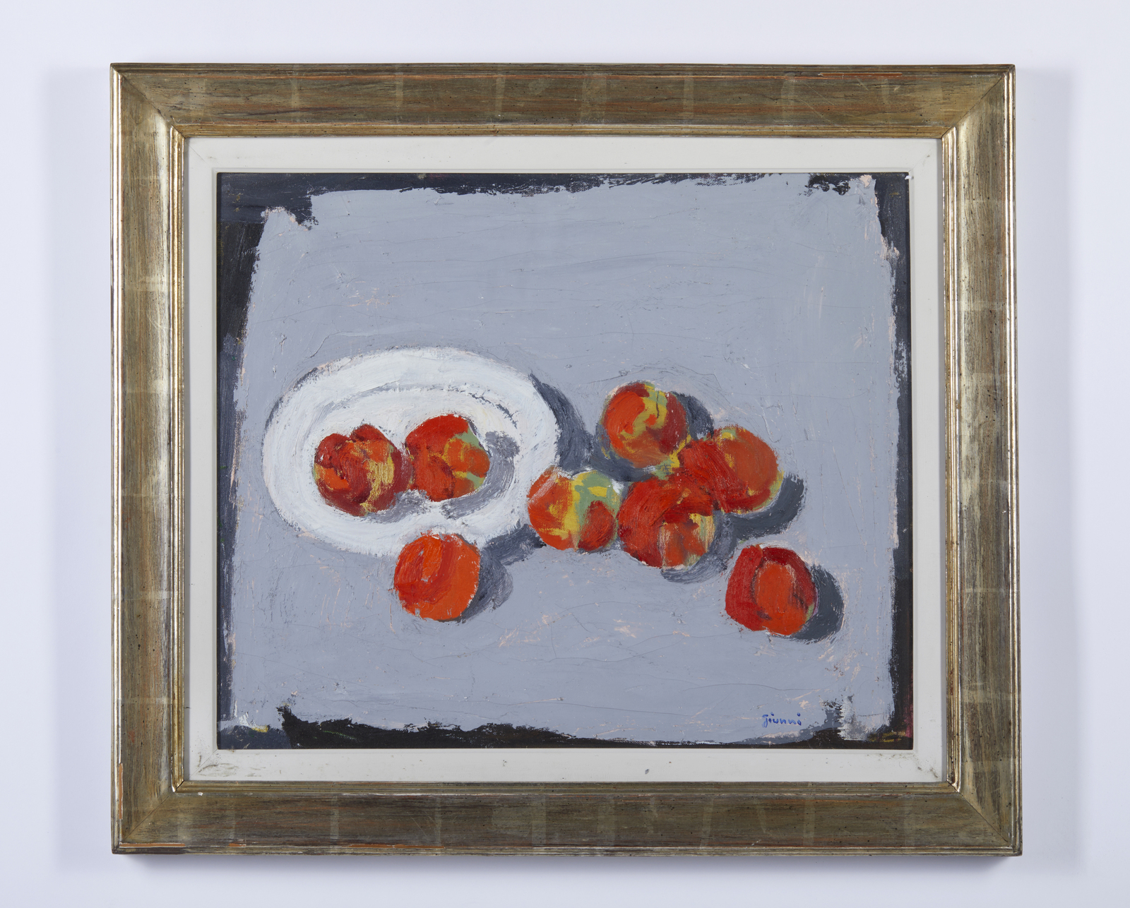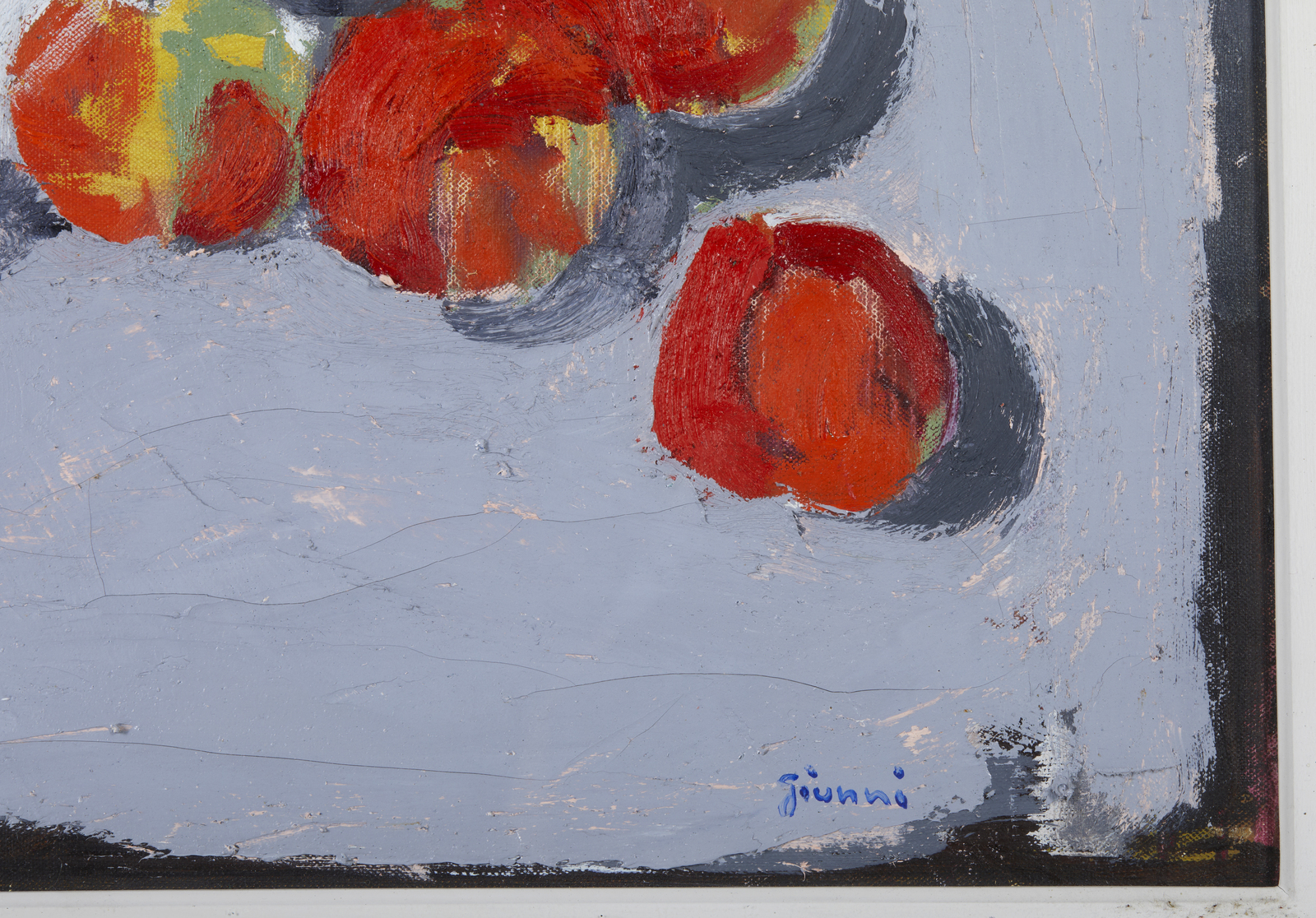 GIUNNI PIERO (1912 - 2000) Natura morta. Olio su tela . Cm 60,00 x 50,00. Firma in basso a destra. Difetti. Cornice presente