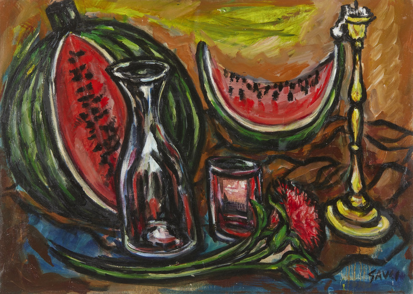 GAULI PIERO (n. 1916) - Composizione con l'anguria e il garofano.