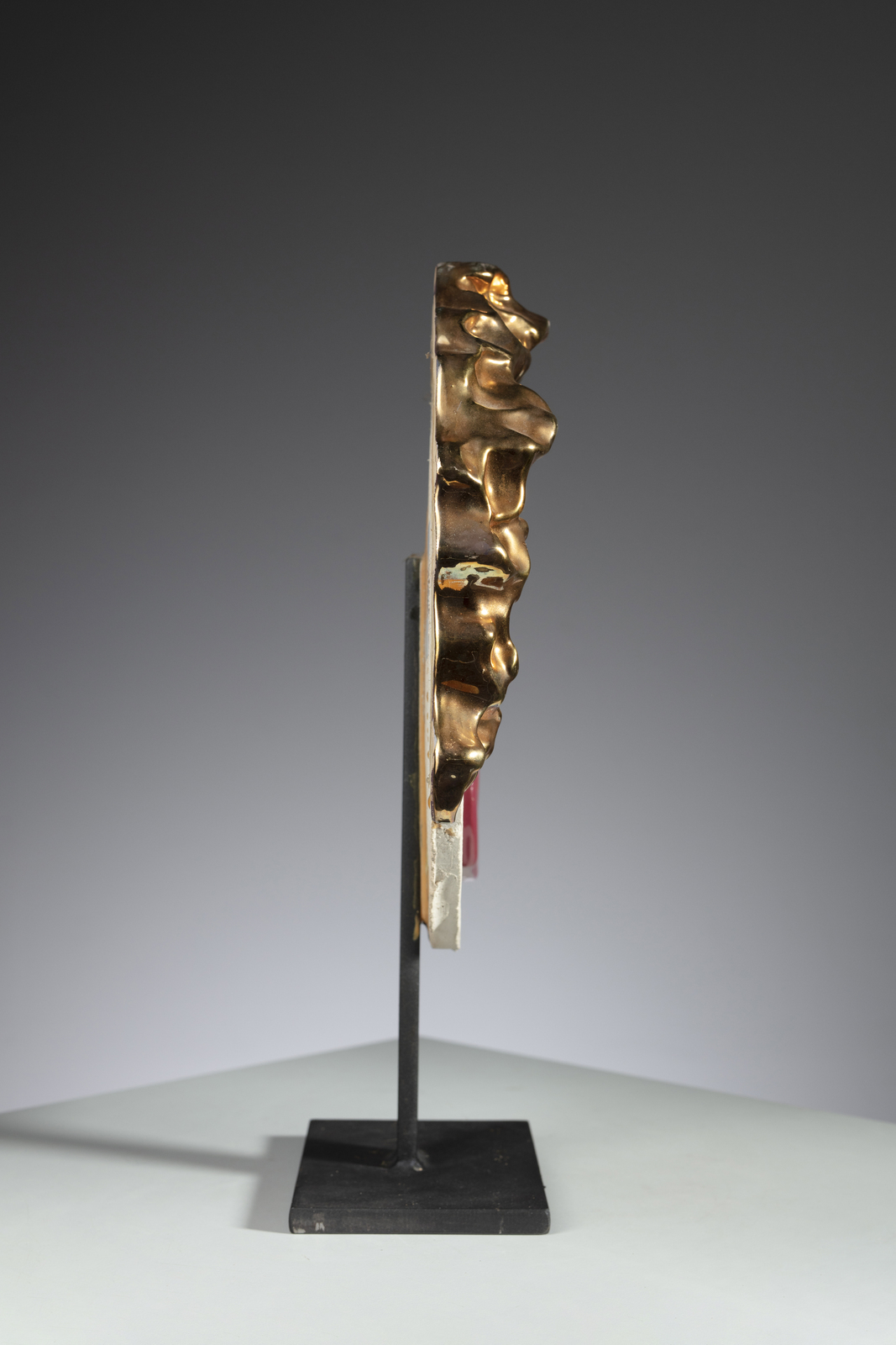 BAJ ENRICO (1924 - 2003) La favorita del presidente per Bottega Gatti Faenza. 1992. Terracotta refrattaria e policroma.. Cm 28,00 x 37,50 x 10,00. al retro: titolo e marchio della bottega di Faenza.