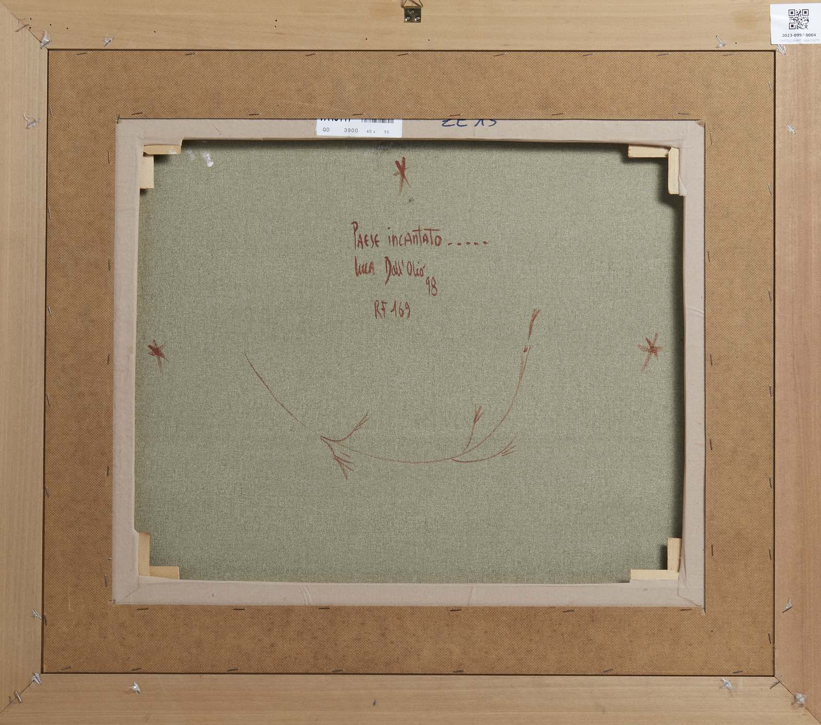 DALL'OLIO LUCA (n. 1958) Paesaggio incantato. . 1998. Olio su tela . Cm 60,00 x 50,00. Firma e anno a destra al centro. Lievi difetti. Cornice presente