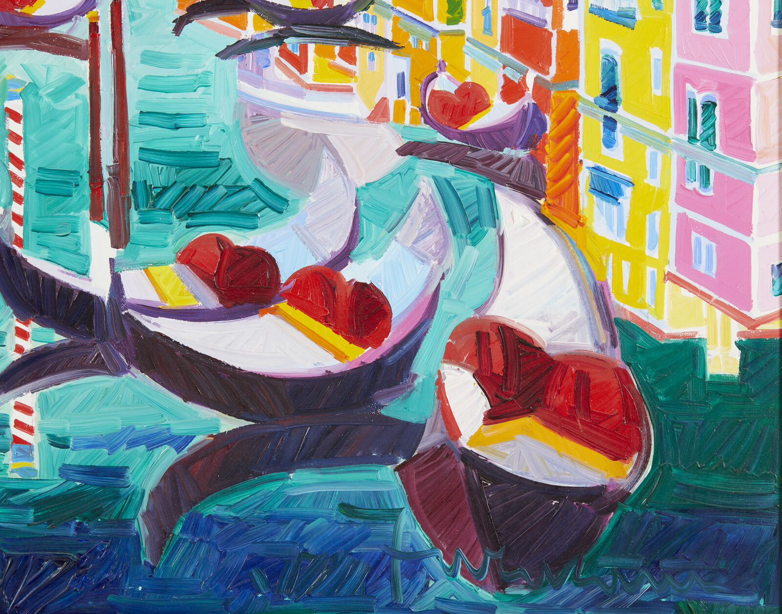 FACCINCANI ATHOS (n. 1951) La magia dei colori veneziani. 2004. Olio su tela . Cm 63,00 x 43,50. Firma in basso a destra. Autentica dell'artista su fotografia. Cornice presente