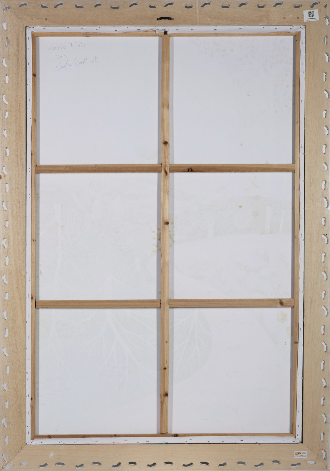 BATTISTI SOFIA (n. 1987) Senza titolo. 2015. Acrilico su tela. Cm 100,00 x 150,00. Firma in basso a destra. Al retro firma e anno. Cornice presente