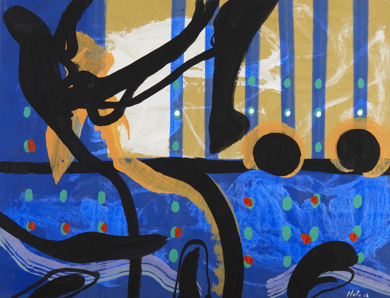 NATA Nero a colori. 2003. Tecnica mista su carta. Cm 77,00 x 59,00. Firma e anno in basso a destra. Al retro firma.