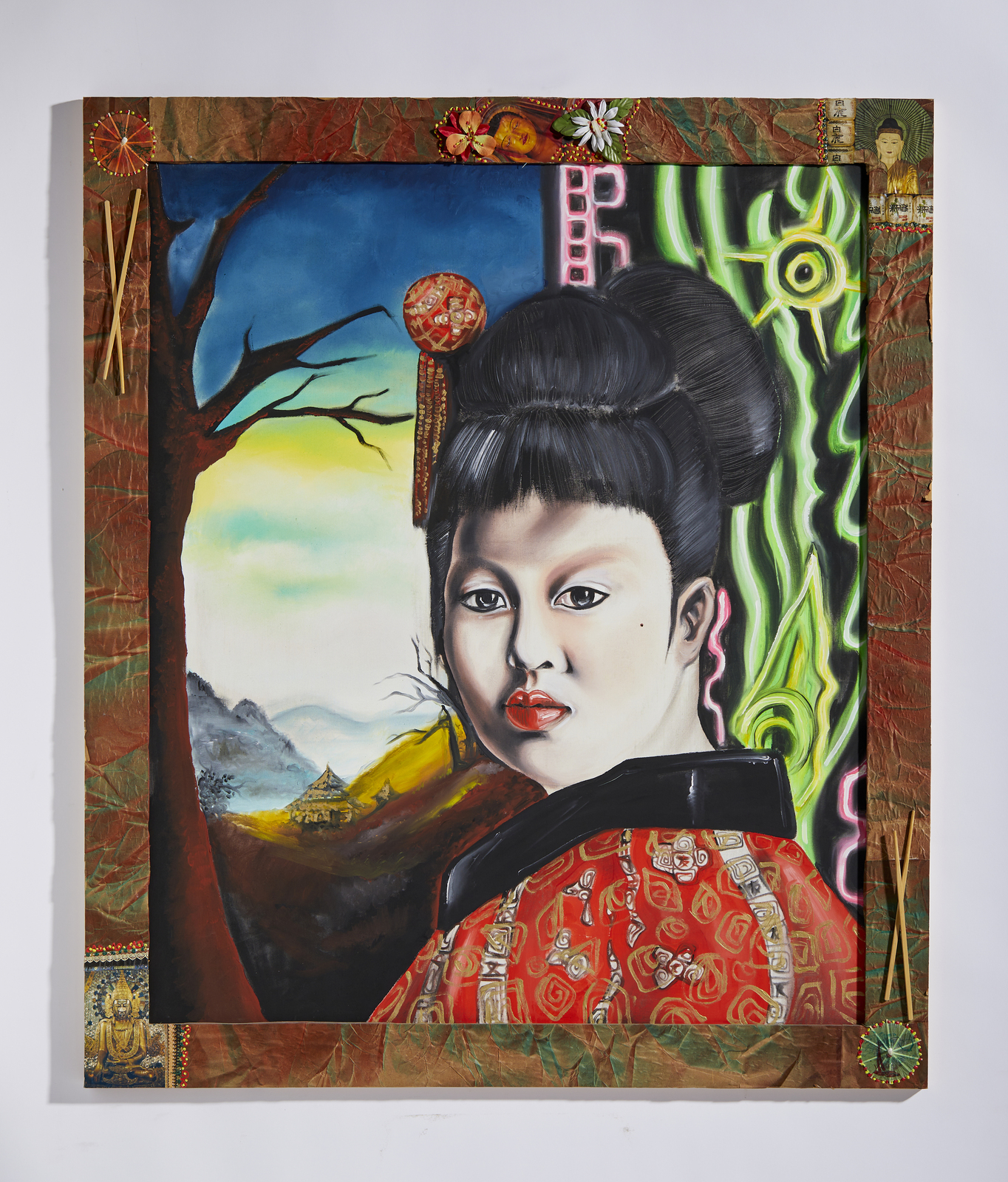 TORCHI LEONARD (n. 1973) Cina. 1996. Tecnica mista su tela. Cm 110,00 x 120,00. Al retro titolo, firma, anno e timbro dell'artista. Lievi difetti. Cornice presente