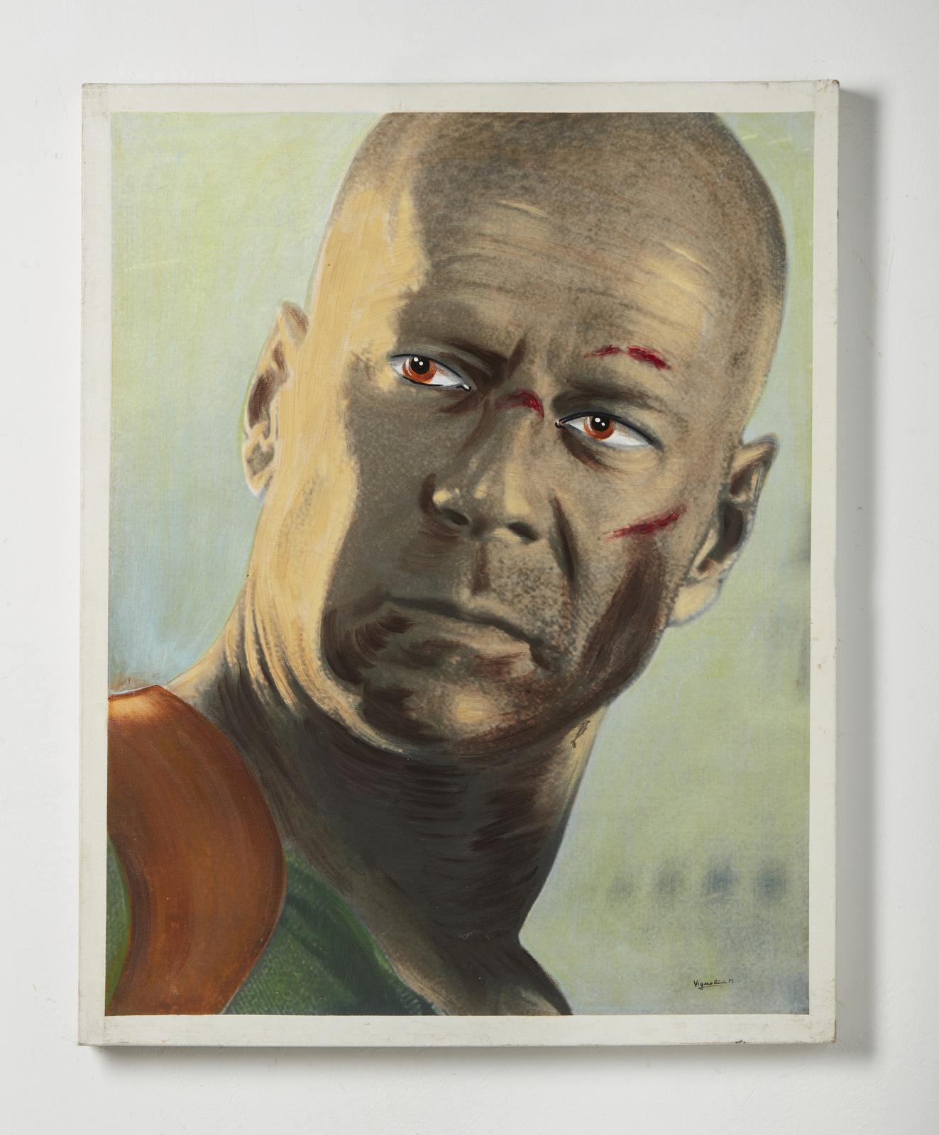 VIGNOLINI MARCO (n. 1941) Bruce Willis. 2012. Olio su tela . Cm 58,00 x 73,50. Firma in basso a destra, Al retro firma e anno. Lievi difetti.