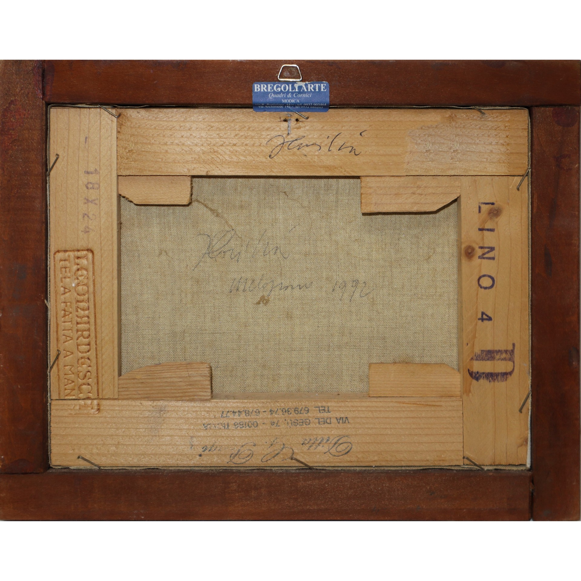 Emanuele Floridia (Ragusa 1932-Ragusa 2003) - Melograno, 1992 cm 18x24, incornice cm 24x30 Olio su tela Firmato sul fronte in basso a destra , firmato, datato e titolato al retro