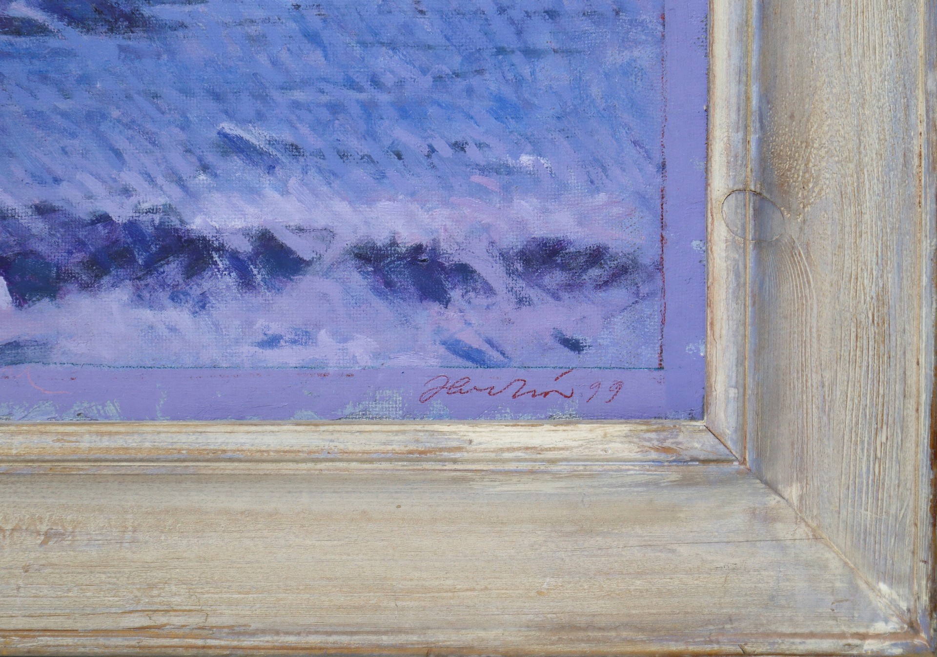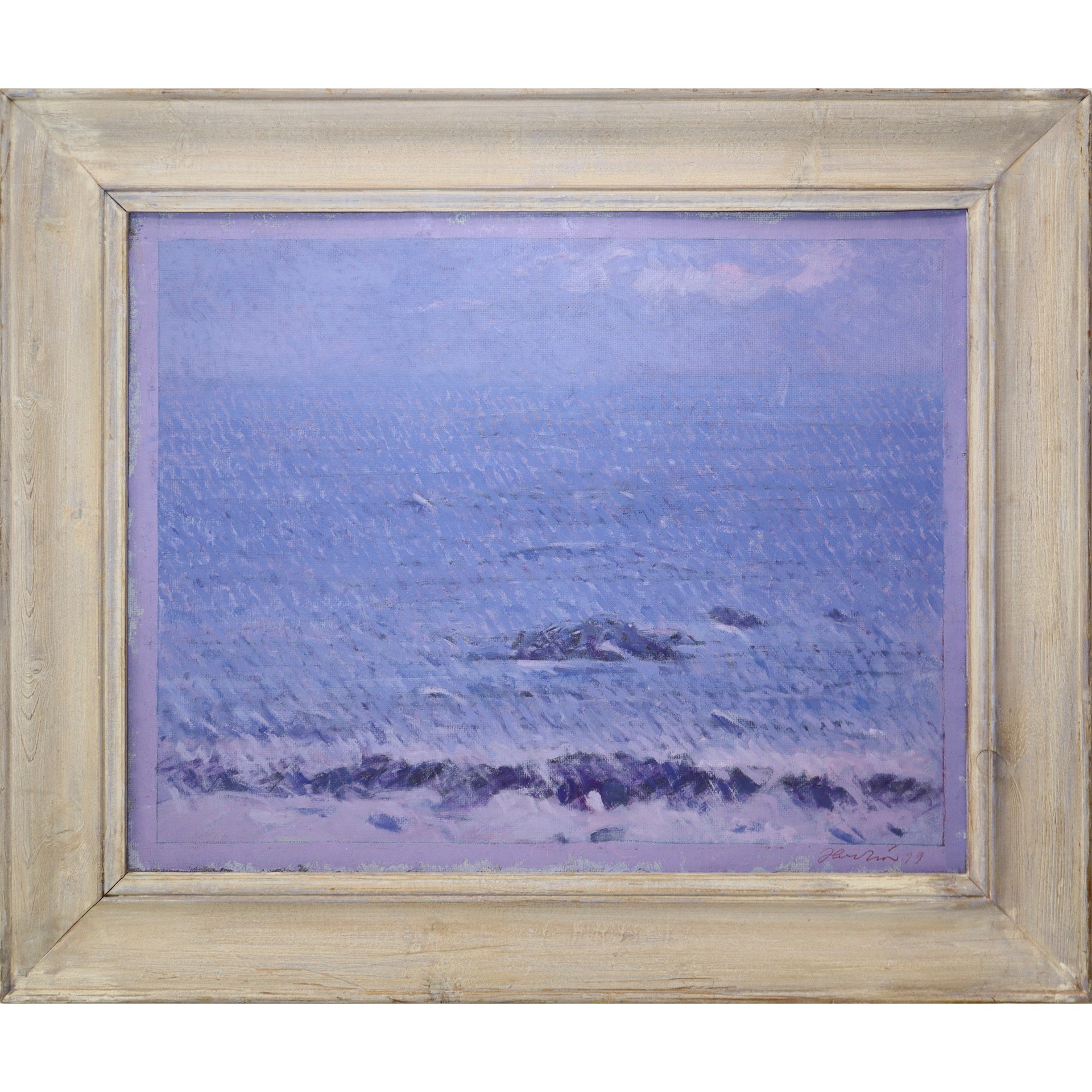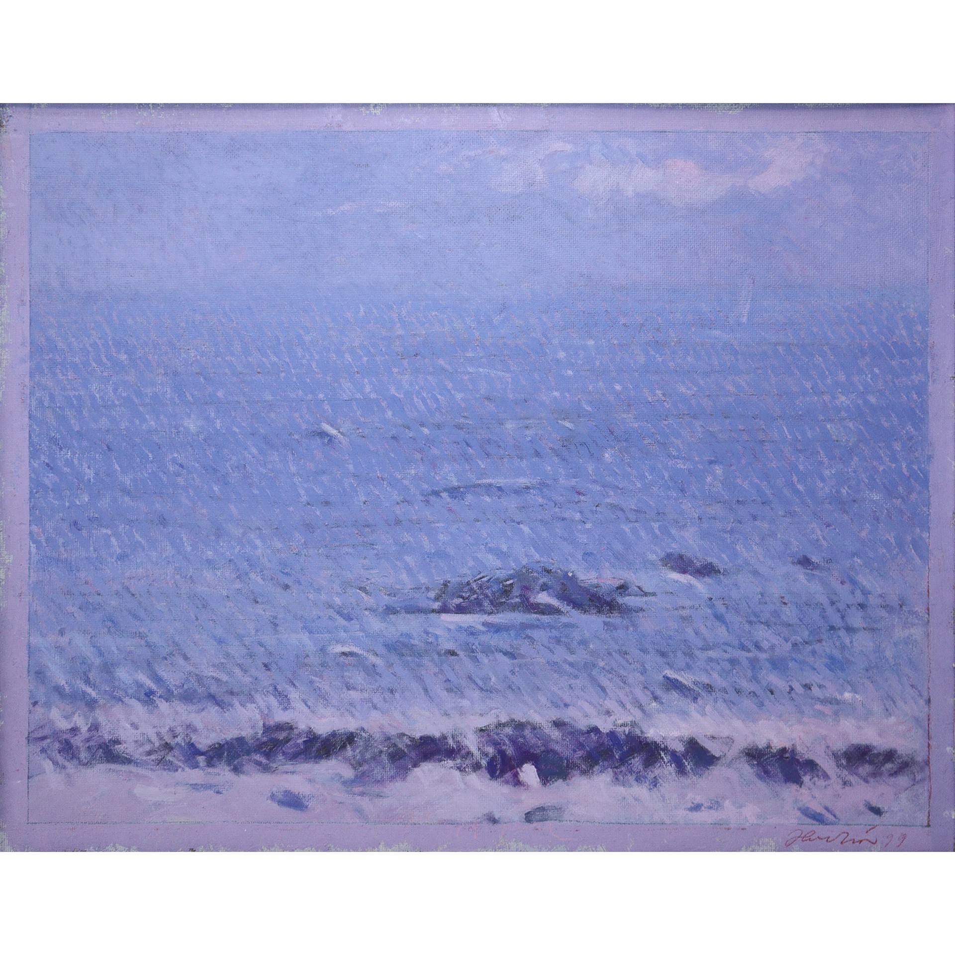 Emanuele Floridia (Ragusa 1932-Ragusa 2003) - Mare, 1999 cm 54x42,5 in cornice cm 56x67, Olio tela applicata su masonite Firmato e datato sul fronte in basso a destra. Firmato e datato sul retro