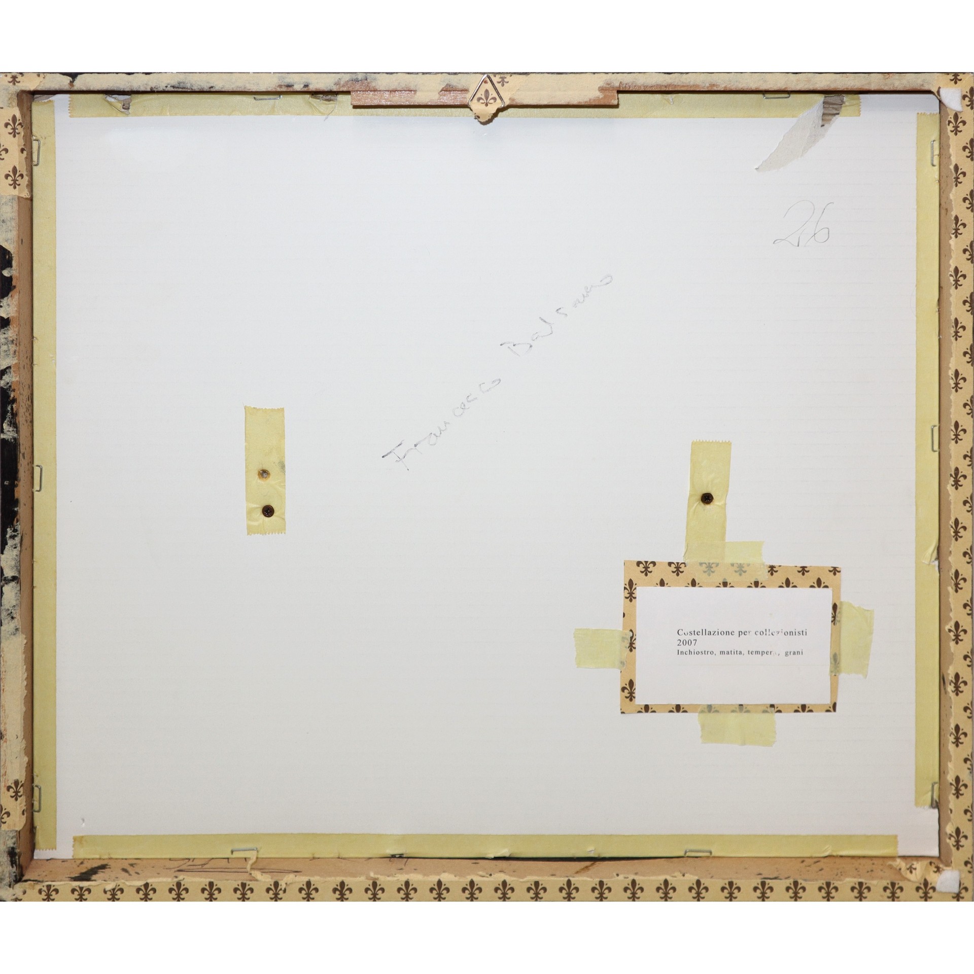 Francesco Balsamo (Catania 1969) - Costellazione per collezionisti, 2007 cm 21x27 n cornice cm 39x45 Inchiostro , matita , tempera e grani su cartoncino Etichetta descrittiva e firma al retro